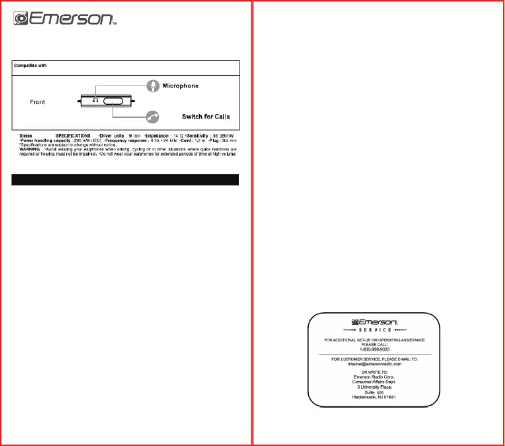 * Enclose your check or money order payable to Emerson Radio in the amount of $10 to cover