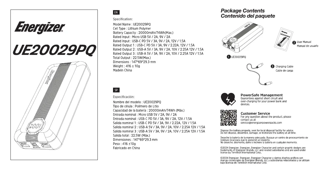 Lies die bedienungsanleitung für Energizer UE20029PQ (2 Seiten) kostenlos online; sie gehört zur Kategorie power bank. Dieses Handbuch wurde von 2 Personen als hilfreich bewertet und erhielt im Schnitt 4.8 Sterne aus 4 Bewertungen. Hast du eine Frage zu Energizer UE20029PQ oder möchtest du andere Nutzer dieses Produkts befragen? Stelle eine Frage