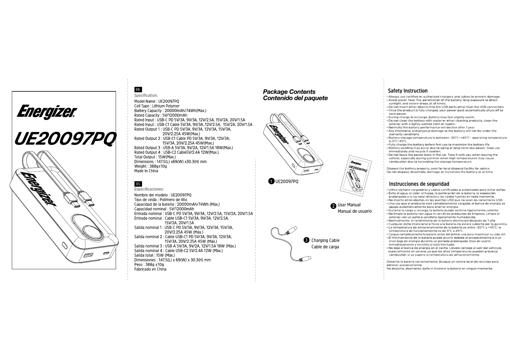 Lies die bedienungsanleitung für Energizer UE20097PQ (2 Seiten) kostenlos online; sie gehört zur Kategorie power bank. Dieses Handbuch wurde von 2 Personen als hilfreich bewertet und erhielt im Schnitt 4.8 Sterne aus 3 Bewertungen. Hast du eine Frage zu Energizer UE20097PQ oder möchtest du andere Nutzer dieses Produkts befragen? Stelle eine Frage
