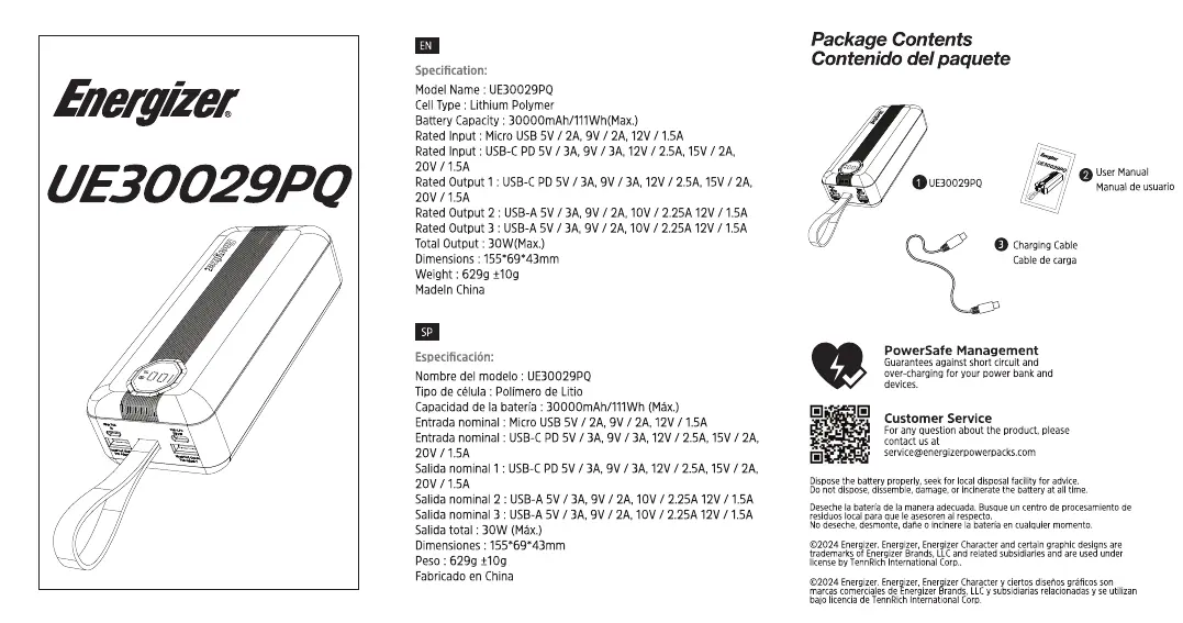 Energizer UE30029PQ Bedienungsanleitung