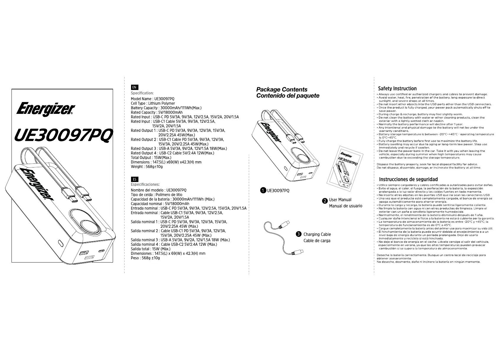Lies die bedienungsanleitung für Energizer UE30097PQ (2 Seiten) kostenlos online; sie gehört zur Kategorie power bank. Dieses Handbuch wurde von 2 Personen als hilfreich bewertet und erhielt im Schnitt 4.2 Sterne aus 7 Bewertungen. Hast du eine Frage zu Energizer UE30097PQ oder möchtest du andere Nutzer dieses Produkts befragen? Stelle eine Frage