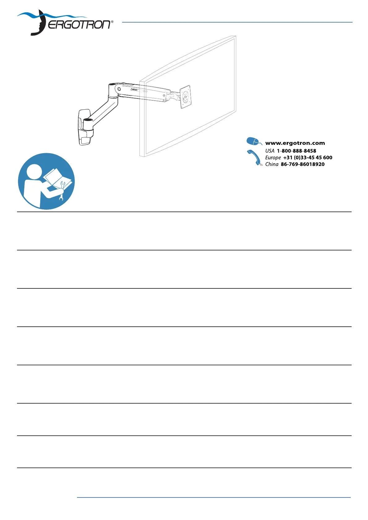 Lies die bedienungsanleitung für Ergotron LX Sit-Stand Wall Mount LCD Arm (20 Seiten) kostenlos online; sie gehört zur Kategorie Flachbildschirmunterstützung. Dieses Handbuch wurde von 20 Personen als hilfreich bewertet und erhielt im Schnitt 4.2 Sterne aus 10.5 Bewertungen. Hast du eine Frage zu Ergotron LX Sit-Stand Wall Mount LCD Arm oder möchtest du andere Nutzer dieses Produkts befragen? Stelle eine Frage