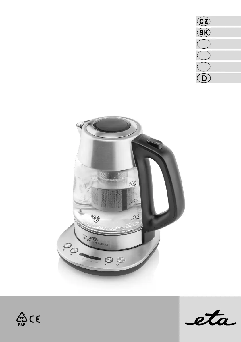 Lies die bedienungsanleitung für Eta Crystela Premium (44 Seiten) kostenlos online; sie gehört zur Kategorie Wasserkocher. Dieses Handbuch wurde von 33 Personen als hilfreich bewertet und erhielt im Schnitt 4.8 Sterne aus 17 Bewertungen. Hast du eine Frage zu Eta Crystela Premium oder möchtest du andere Nutzer dieses Produkts befragen? Stelle eine Frage
