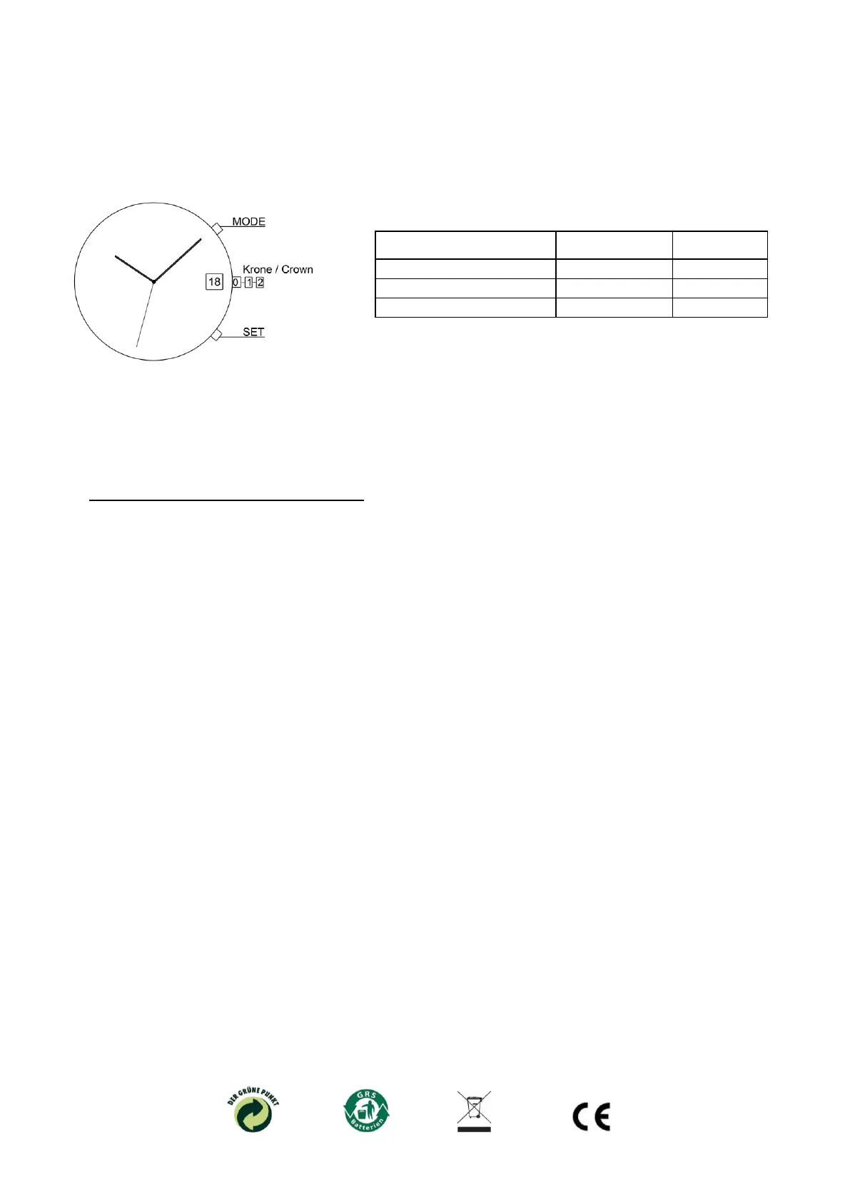 • Drücken Sie nun den Knopf SET für ca. 5 Sekunden, bis der Sekundenzeiger auf 12:00 Uhr läuft.
