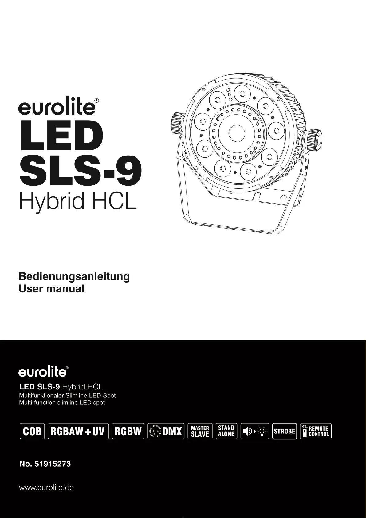 Lies die bedienungsanleitung für Eurolite LED SLS-9 (36 Seiten) kostenlos online; sie gehört zur Kategorie Beleuchtung. Dieses Handbuch wurde von 21 Personen als hilfreich bewertet und erhielt im Schnitt 4.3 Sterne aus 7 Bewertungen. Hast du eine Frage zu Eurolite LED SLS-9 oder möchtest du andere Nutzer dieses Produkts befragen? Stelle eine Frage