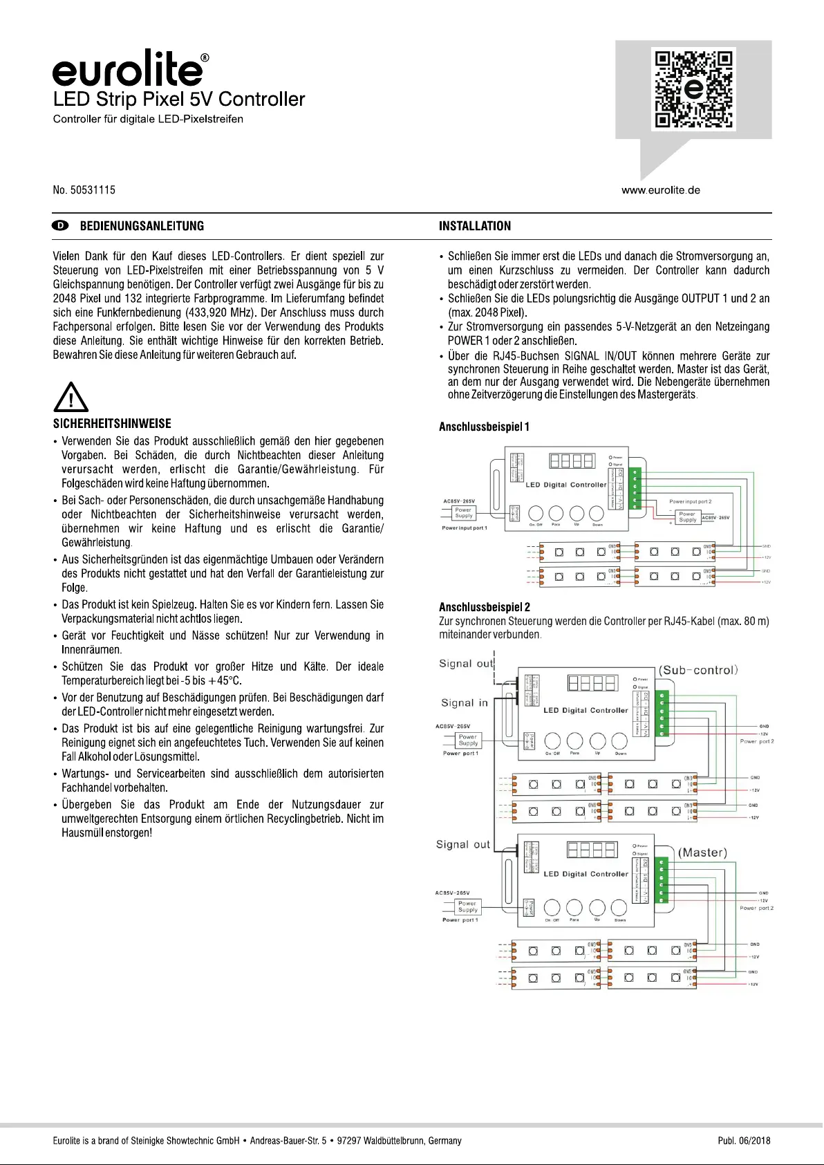Eurolite LED Strip Pixel 5V Controller Bedienungsanleitung