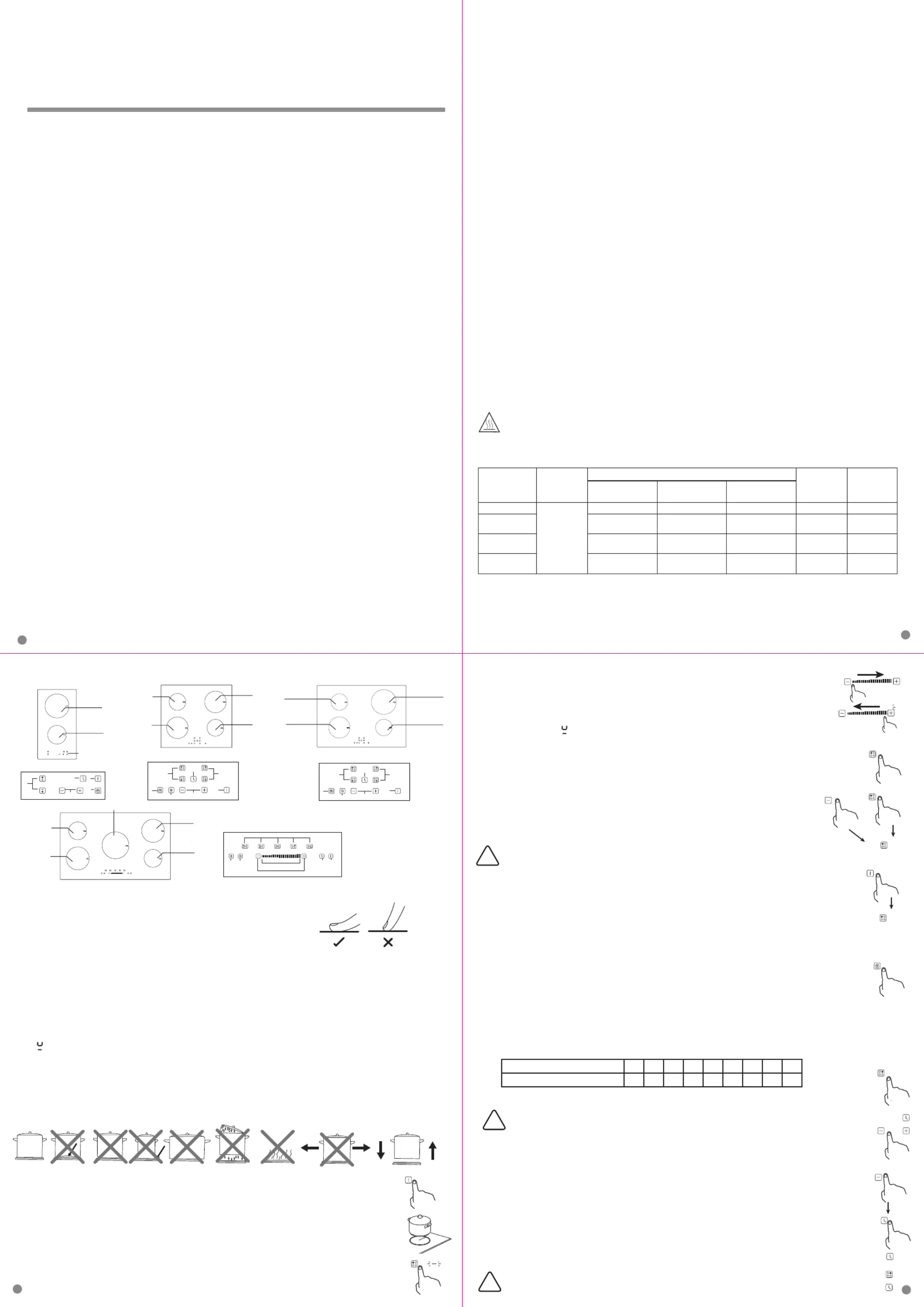 6. When cooking timer expires, the corresponding cooking zone will switch off automatically.