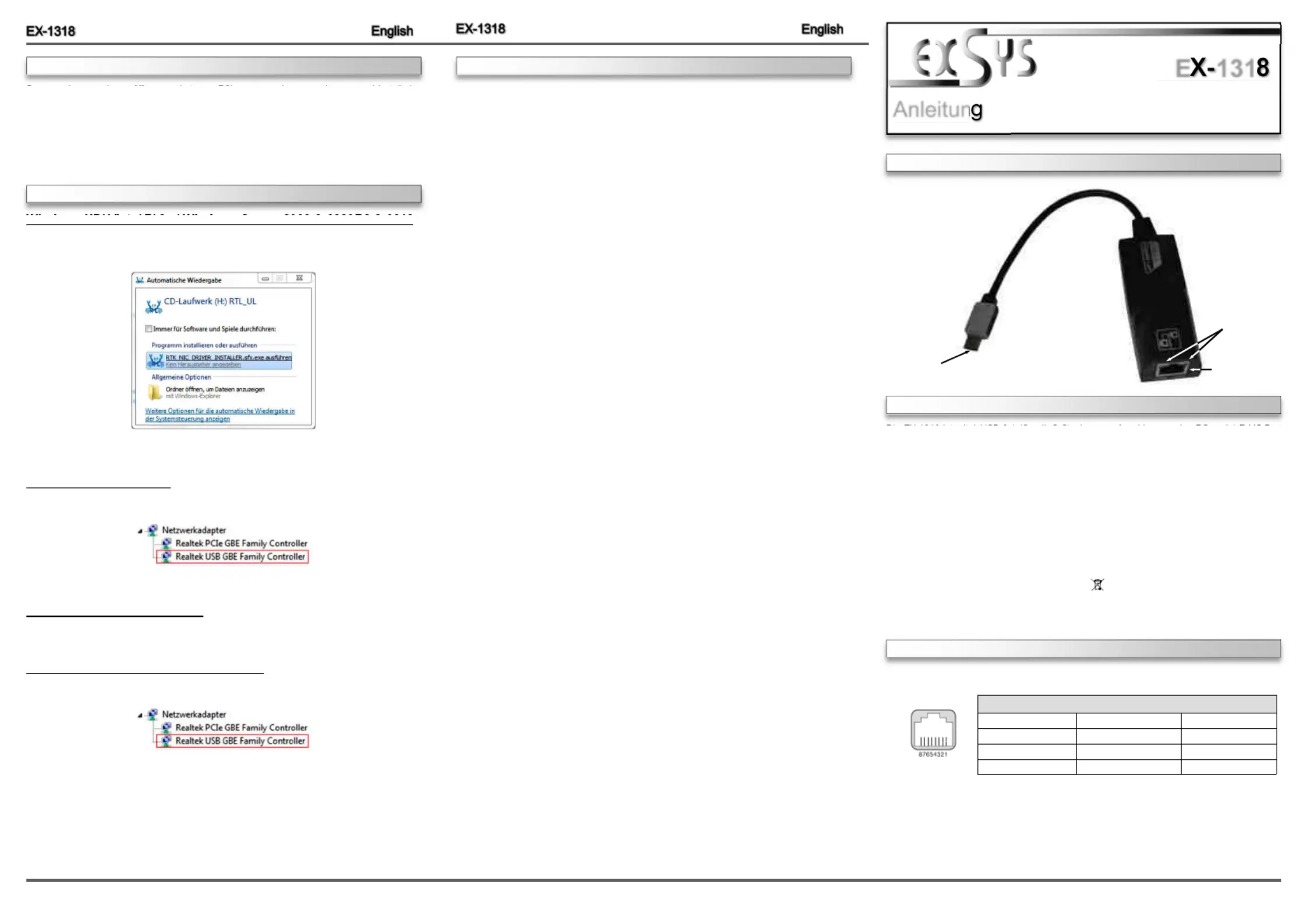 10/100/1000 LAN“ in the device manager. The EX 1318 requires the correctly driver. Now will -