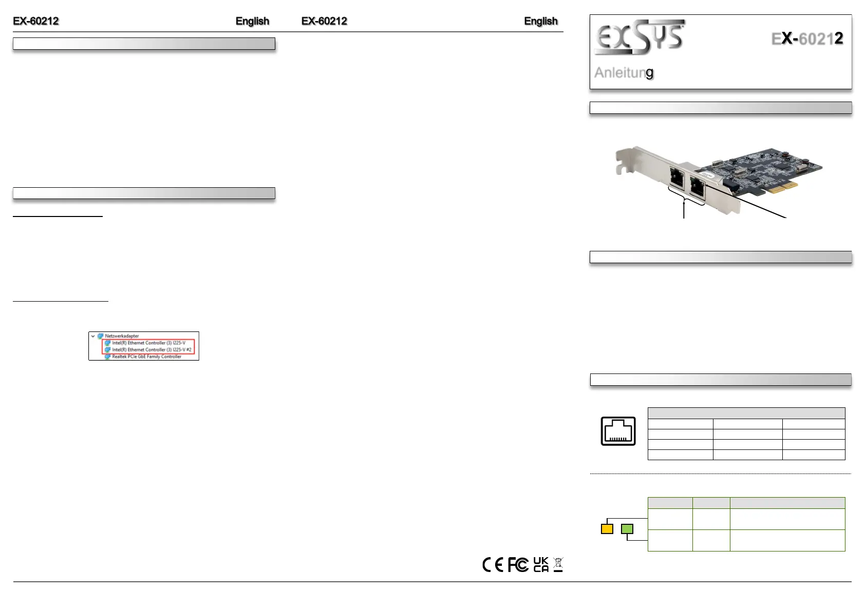 Bedienungsanleitung Netzwerkkarte / Adapter EXSYS