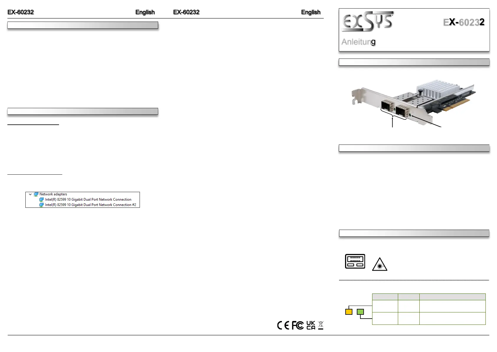 Lies die bedienungsanleitung für EXSYS EX-60232 (2 Seiten) kostenlos online; sie gehört zur Kategorie Netzwerkkarte / Adapter. Dieses Handbuch wurde von 2 Personen als hilfreich bewertet und erhielt im Schnitt 4.5 Sterne aus 5 Bewertungen. Hast du eine Frage zu EXSYS EX-60232 oder möchtest du andere Nutzer dieses Produkts befragen? Stelle eine Frage