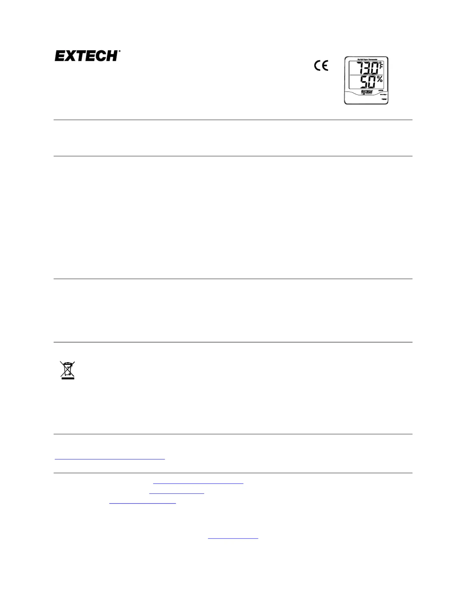 Congratulations on your purchase of Extech’s Big Digit Hygro-Thermometer. This professional meter, with proper care, will provide years of safe