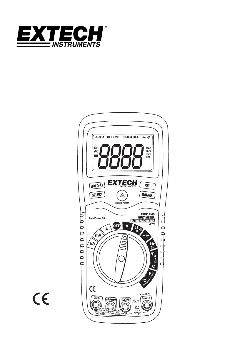 Lies die bedienungsanleitung für Extech EX470 (16 Seiten) kostenlos online; sie gehört zur Kategorie Multimeter. Dieses Handbuch wurde von 18 Personen als hilfreich bewertet und erhielt im Schnitt 4.9 Sterne aus 9 Bewertungen. Hast du eine Frage zu Extech EX470 oder möchtest du andere Nutzer dieses Produkts befragen? Stelle eine Frage