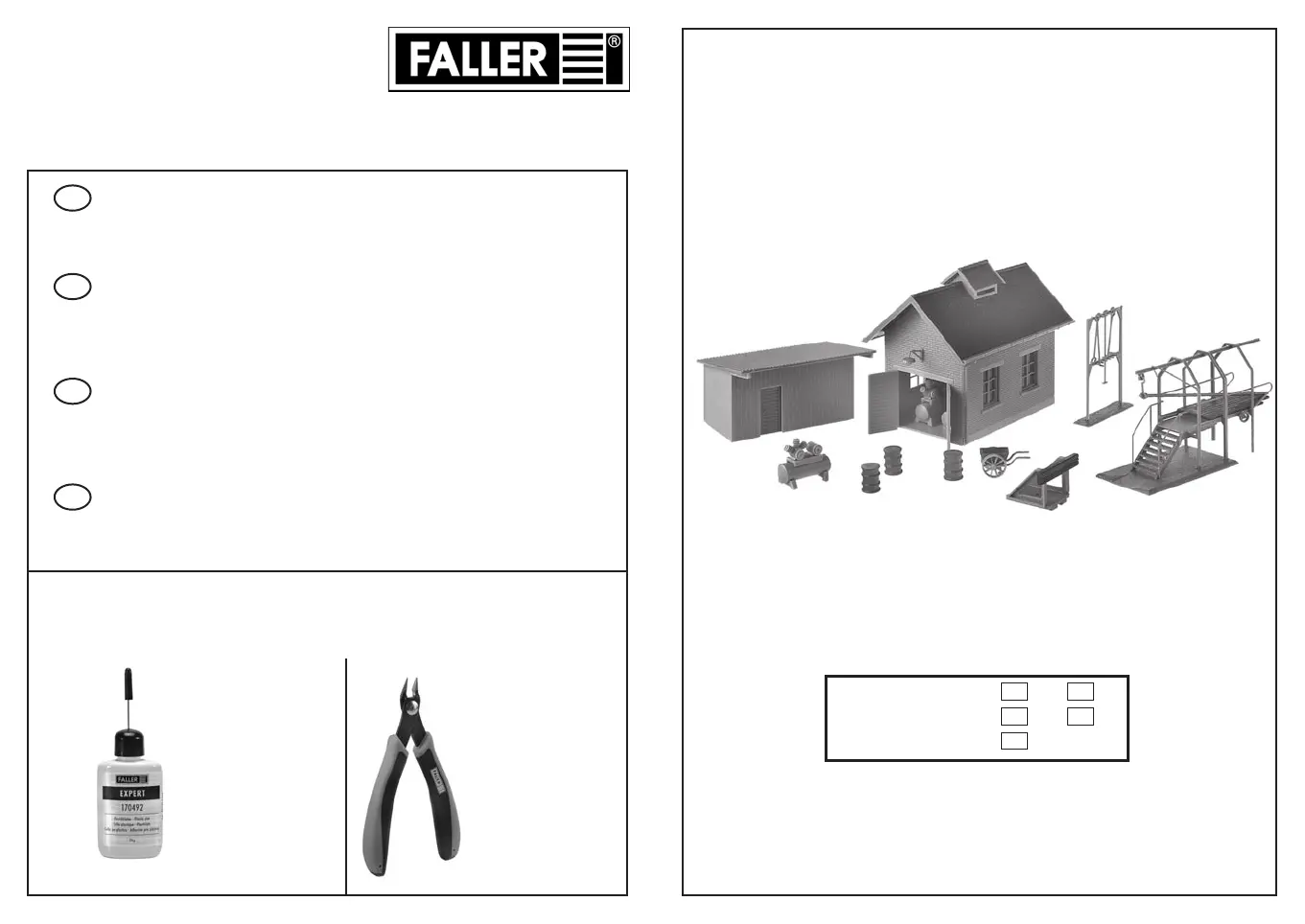 Pour l’assemblage du modèle, nous vous recommandons les articles FALLER suivants (non inclus dans le kit):