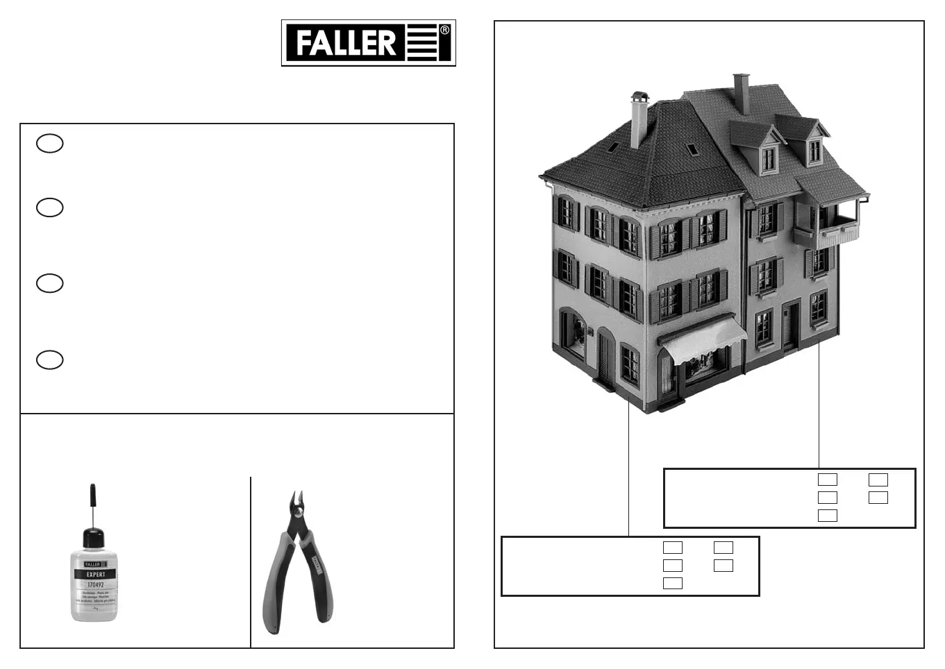 Pour l’assemblage du modèle, nous vous recommandons les articles FALLER suivants (non inclus dans le kit):