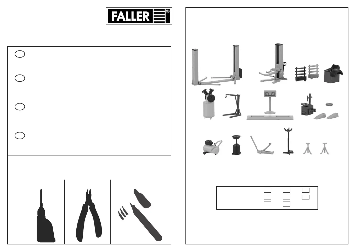 Pour l’assemblage du modèle, nous vous recommandons les articles FALLER suivants (non inclus dans le kit):