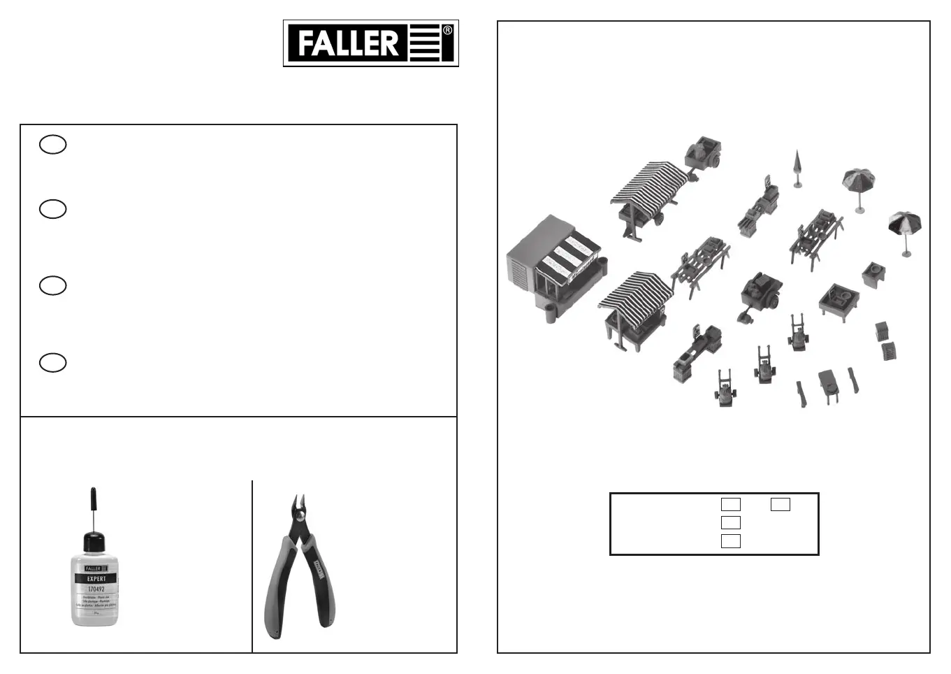 Pour l’assemblage du modèle, nous vous recommandons les articles FALLER suivants (non inclus dans le kit):