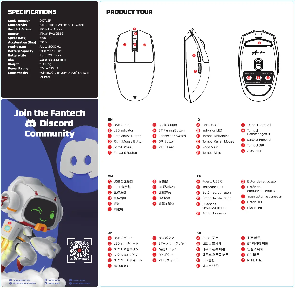 Lies die bedienungsanleitung für Fantech ARIA II PRO XD7V2P (2 Seiten) kostenlos online; sie gehört zur Kategorie Computermaus. Dieses Handbuch wurde von 13 Personen als hilfreich bewertet und erhielt im Schnitt 4.7 Sterne aus 7 Bewertungen. Hast du eine Frage zu Fantech ARIA II PRO XD7V2P oder möchtest du andere Nutzer dieses Produkts befragen? Stelle eine Frage