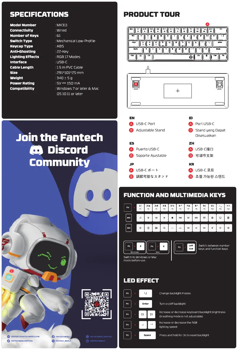 Lies die bedienungsanleitung für Fantech ATOM AIR61 MK311 (2 Seiten) kostenlos online; sie gehört zur Kategorie Klaviatur. Dieses Handbuch wurde von 6 Personen als hilfreich bewertet und erhielt im Schnitt 4.8 Sterne aus 3.5 Bewertungen. Hast du eine Frage zu Fantech ATOM AIR61 MK311 oder möchtest du andere Nutzer dieses Produkts befragen? Stelle eine Frage