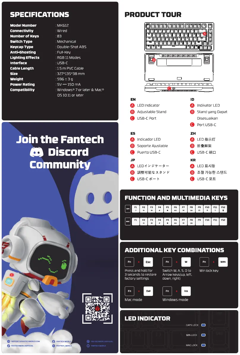 Lies die bedienungsanleitung für Fantech ATOM X83 MK612 (2 Seiten) kostenlos online; sie gehört zur Kategorie Klaviatur. Dieses Handbuch wurde von 13 Personen als hilfreich bewertet und erhielt im Schnitt 4.5 Sterne aus 7 Bewertungen. Hast du eine Frage zu Fantech ATOM X83 MK612 oder möchtest du andere Nutzer dieses Produkts befragen? Stelle eine Frage