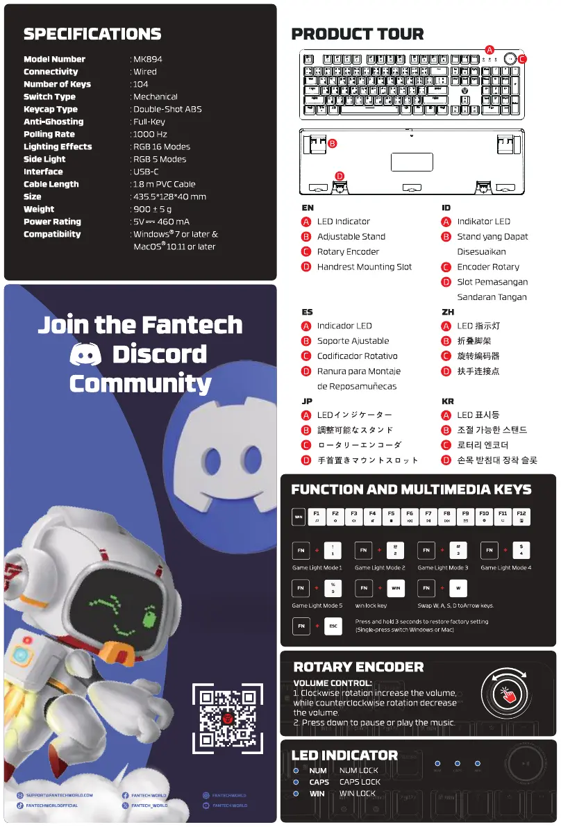 Lies die bedienungsanleitung für Fantech MAXPOWER II MK894 (2 Seiten) kostenlos online; sie gehört zur Kategorie Klaviatur. Dieses Handbuch wurde von 7 Personen als hilfreich bewertet und erhielt im Schnitt 4.6 Sterne aus 4 Bewertungen. Hast du eine Frage zu Fantech MAXPOWER II MK894 oder möchtest du andere Nutzer dieses Produkts befragen? Stelle eine Frage