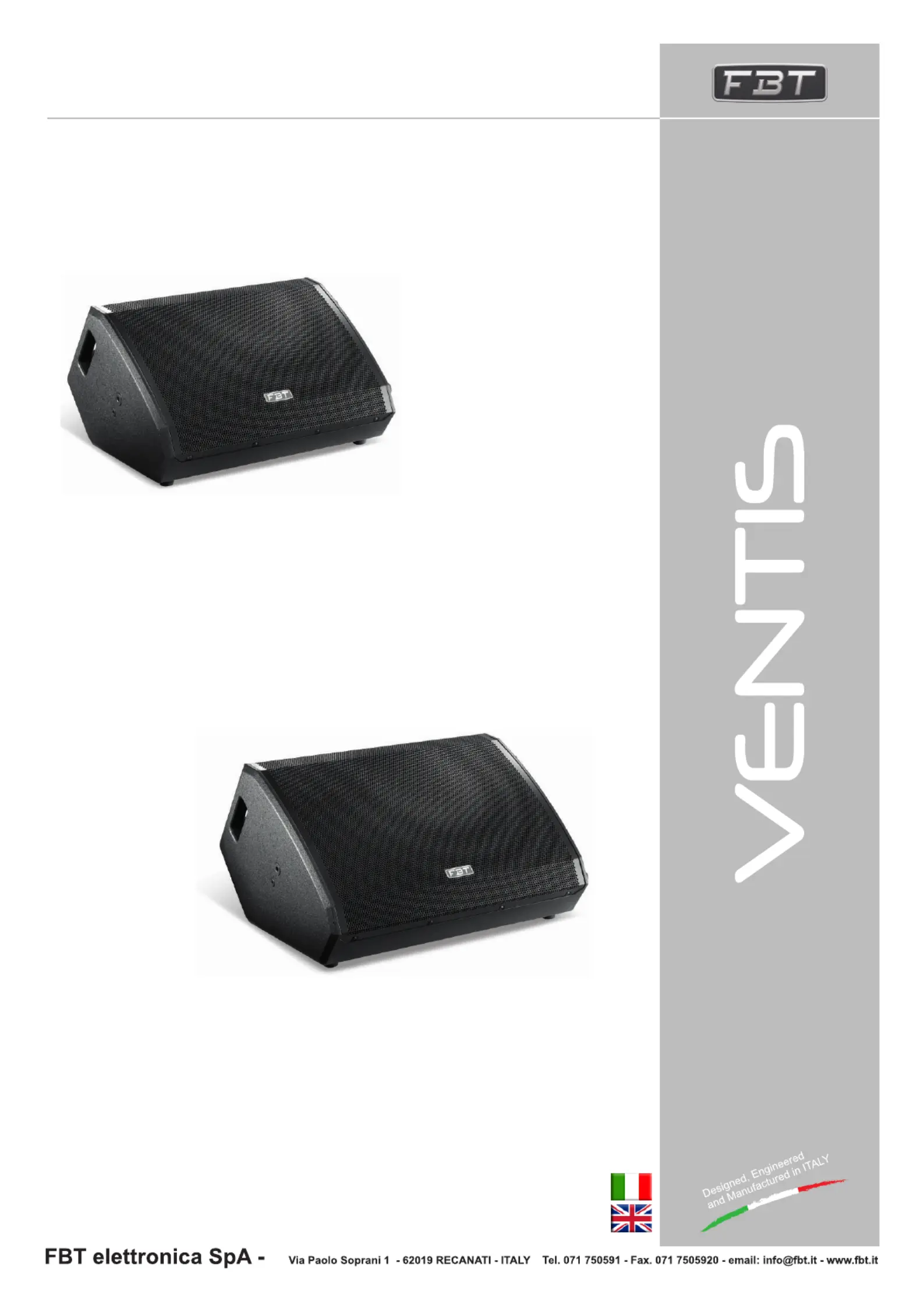 Lies die bedienungsanleitung für FBT VENTIS 115MA (20 Seiten) kostenlos online; sie gehört zur Kategorie Lautsprecher. Dieses Handbuch wurde von 79 Personen als hilfreich bewertet und erhielt im Schnitt 4.4 Sterne aus 2 Bewertungen. Hast du eine Frage zu FBT VENTIS 115MA oder möchtest du andere Nutzer dieses Produkts befragen? Stelle eine Frage