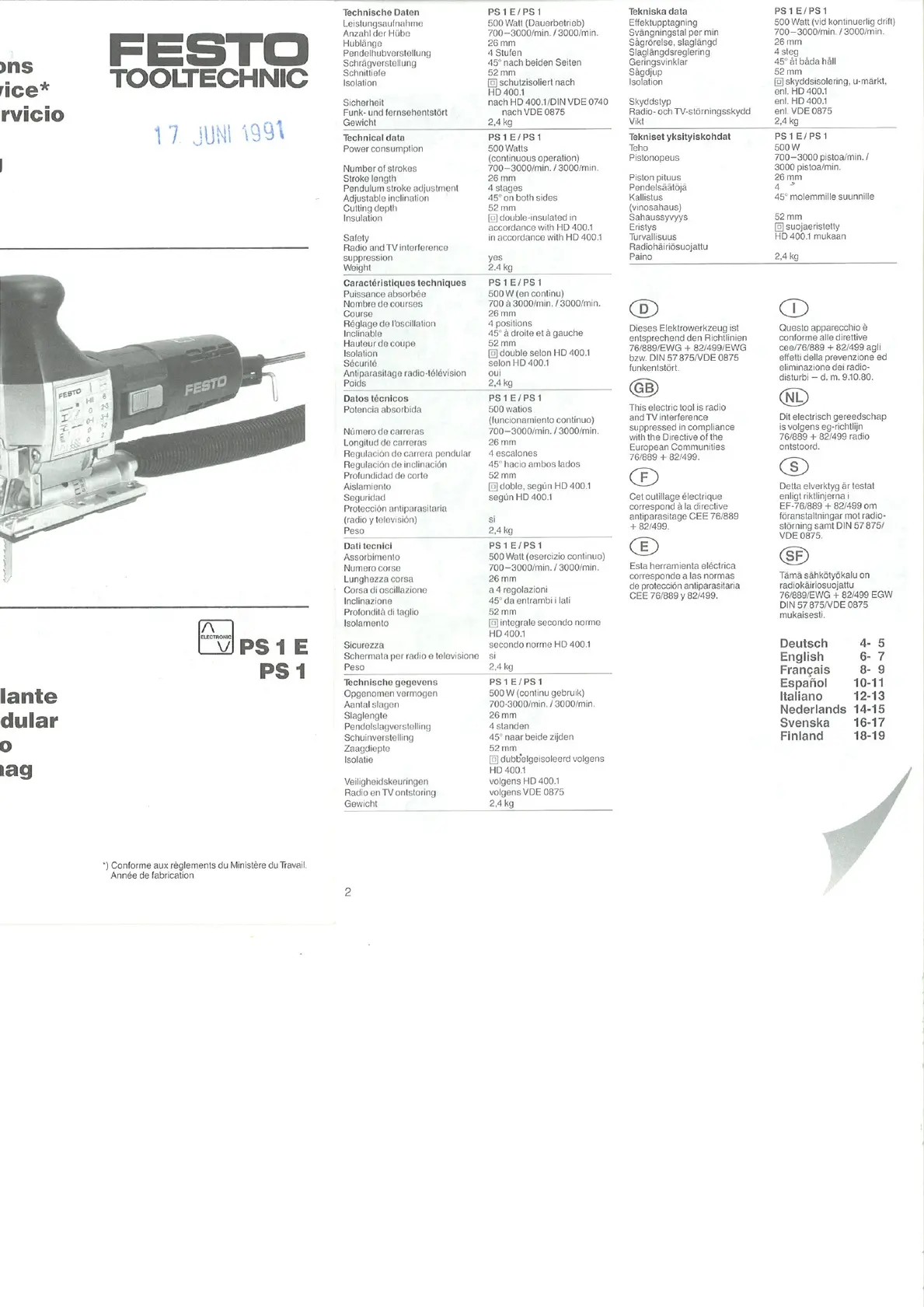 Lies die bedienungsanleitung für Festo PS 1 (12 Seiten) kostenlos online; sie gehört zur Kategorie Säge . Dieses Handbuch wurde von 17 Personen als hilfreich bewertet und erhielt im Schnitt 4.3 Sterne aus 9 Bewertungen. Hast du eine Frage zu Festo PS 1 oder möchtest du andere Nutzer dieses Produkts befragen? Stelle eine Frage