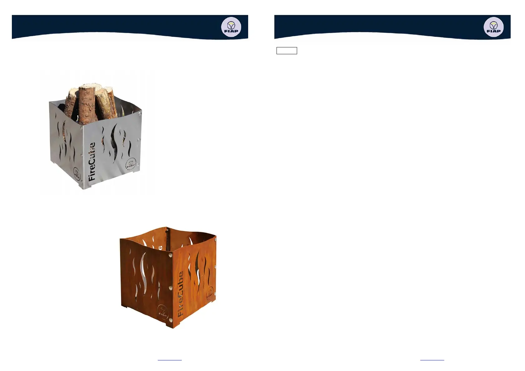 Lies die bedienungsanleitung für Fiap FireCube (10 Seiten) kostenlos online; sie gehört zur Kategorie Ofen. Dieses Handbuch wurde von 33 Personen als hilfreich bewertet und erhielt im Schnitt 4.0 Sterne aus 2 Bewertungen. Hast du eine Frage zu Fiap FireCube oder möchtest du andere Nutzer dieses Produkts befragen? Stelle eine Frage