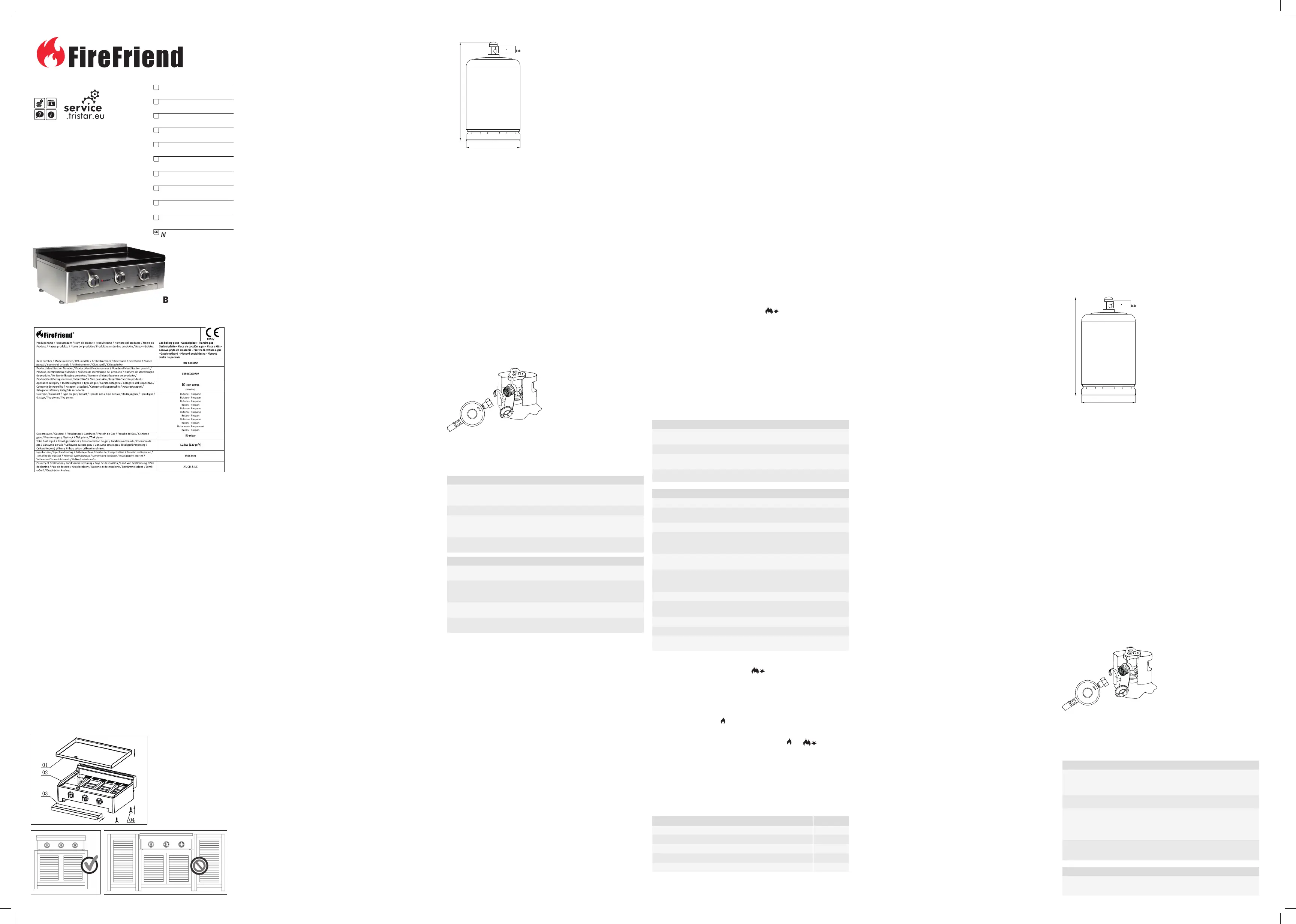 VERY IMPORTANT: DISCONNECT THE GAS CYLINDER WHEN THE barbecue IS NOT IN USE.