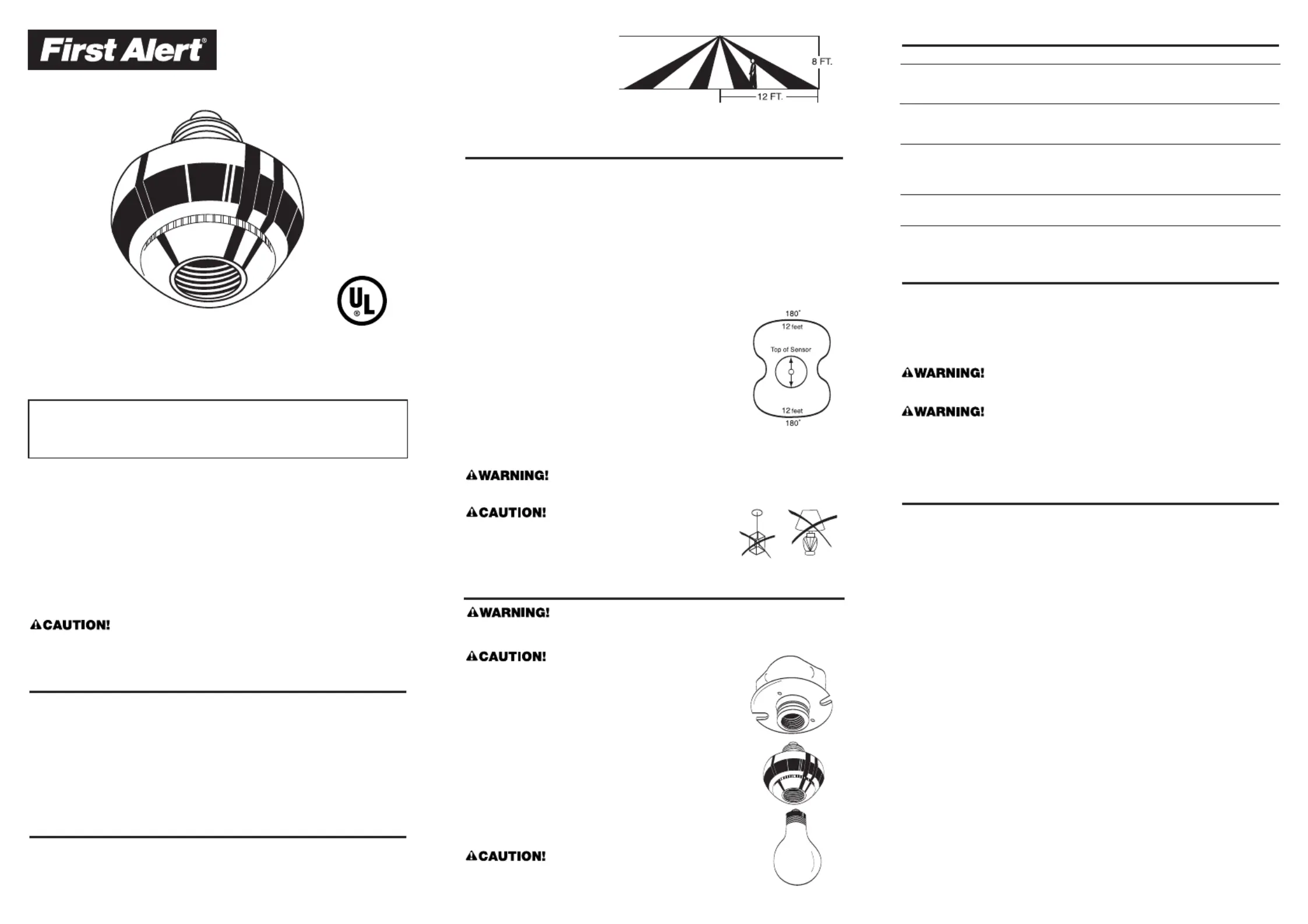 • Senses activity at a distance of 12 feet (when mounted at a height of 8