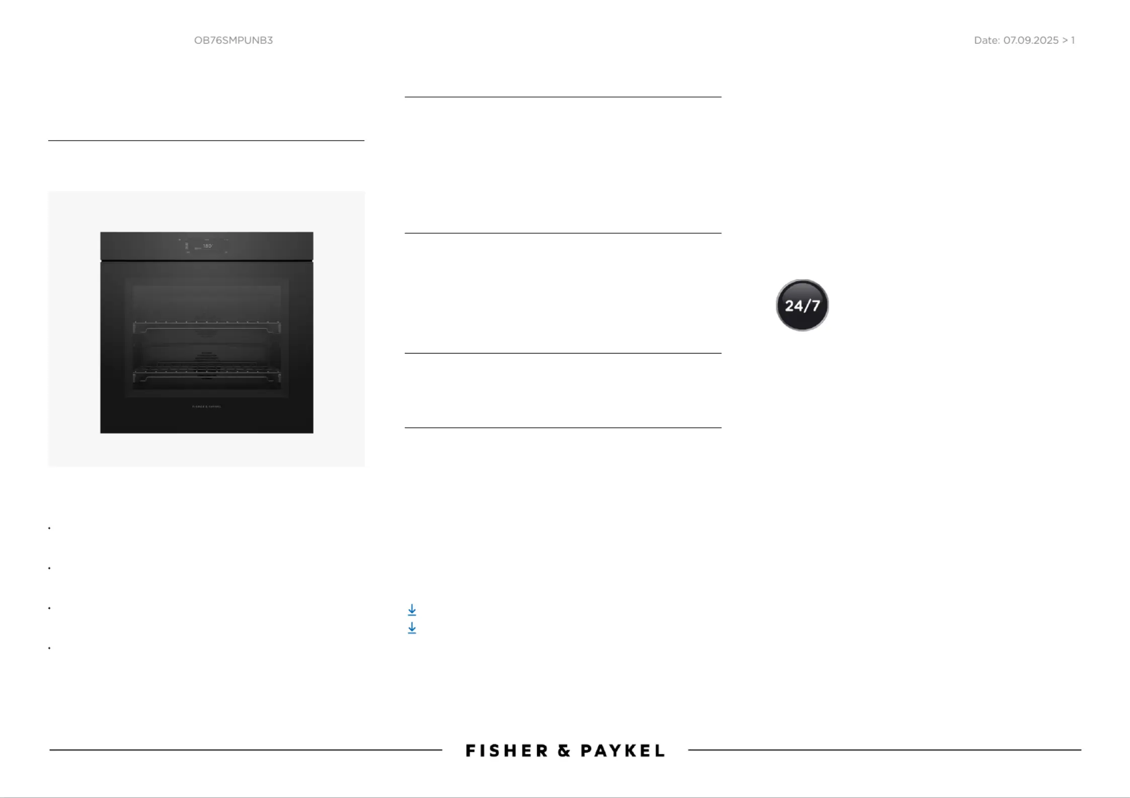 Lies die bedienungsanleitung für Fisher & Paykel OB76SMPUNB3 (1 Seiten) kostenlos online; sie gehört zur Kategorie Backöfen. Dieses Handbuch wurde von 11 Personen als hilfreich bewertet und erhielt im Schnitt 3.9 Sterne aus 6 Bewertungen. Hast du eine Frage zu Fisher & Paykel OB76SMPUNB3 oder möchtest du andere Nutzer dieses Produkts befragen? Stelle eine Frage