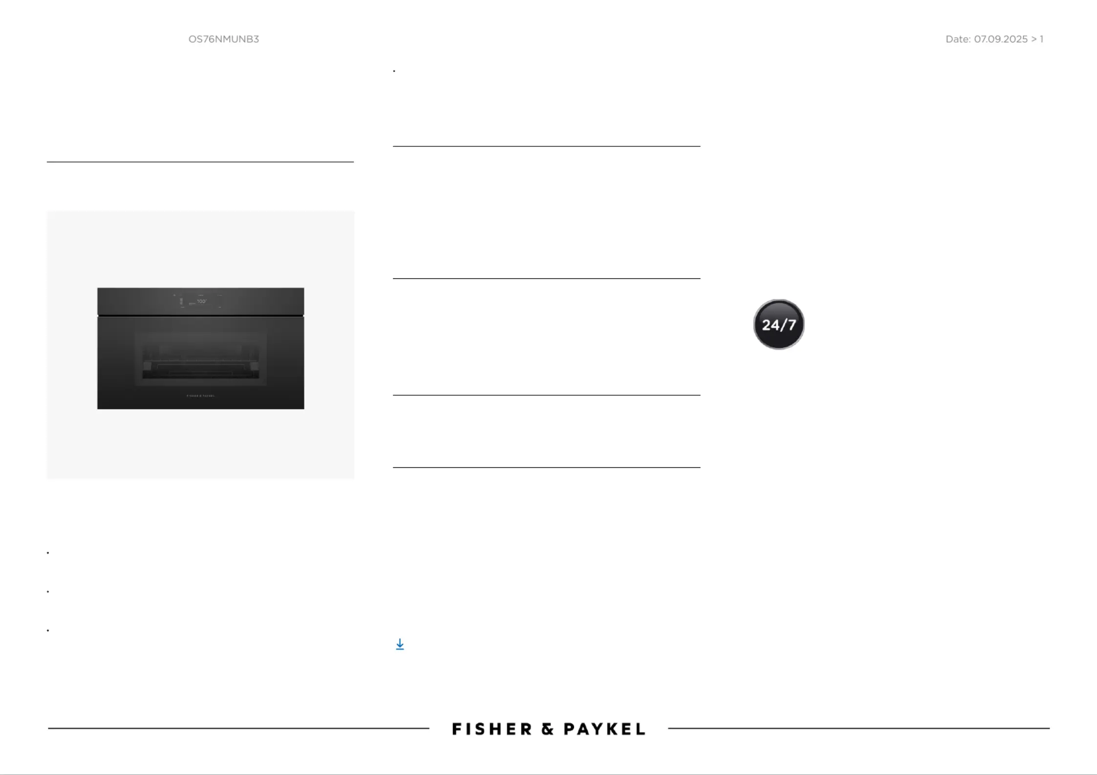 Lies die bedienungsanleitung für Fisher & Paykel OS76NMUNB3 (1 Seiten) kostenlos online; sie gehört zur Kategorie Backöfen. Dieses Handbuch wurde von 19 Personen als hilfreich bewertet und erhielt im Schnitt 3.8 Sterne aus 10 Bewertungen. Hast du eine Frage zu Fisher & Paykel OS76NMUNB3 oder möchtest du andere Nutzer dieses Produkts befragen? Stelle eine Frage