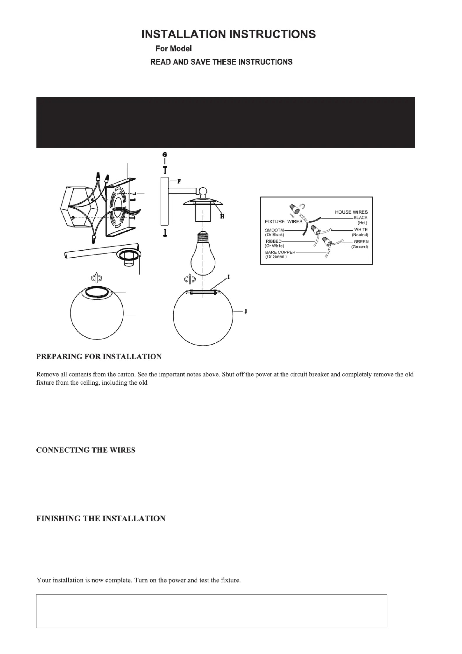 installation of the lighting fixture.We strongly suggest that all direct-wired fixture be installed by a qualified and licensed