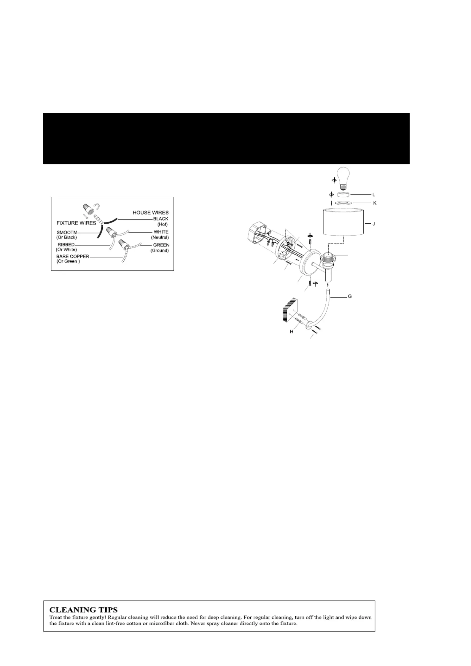 light fixture. We strongly suggest that all direct-wired fixtures be installed by a qualified, licensed electrician.