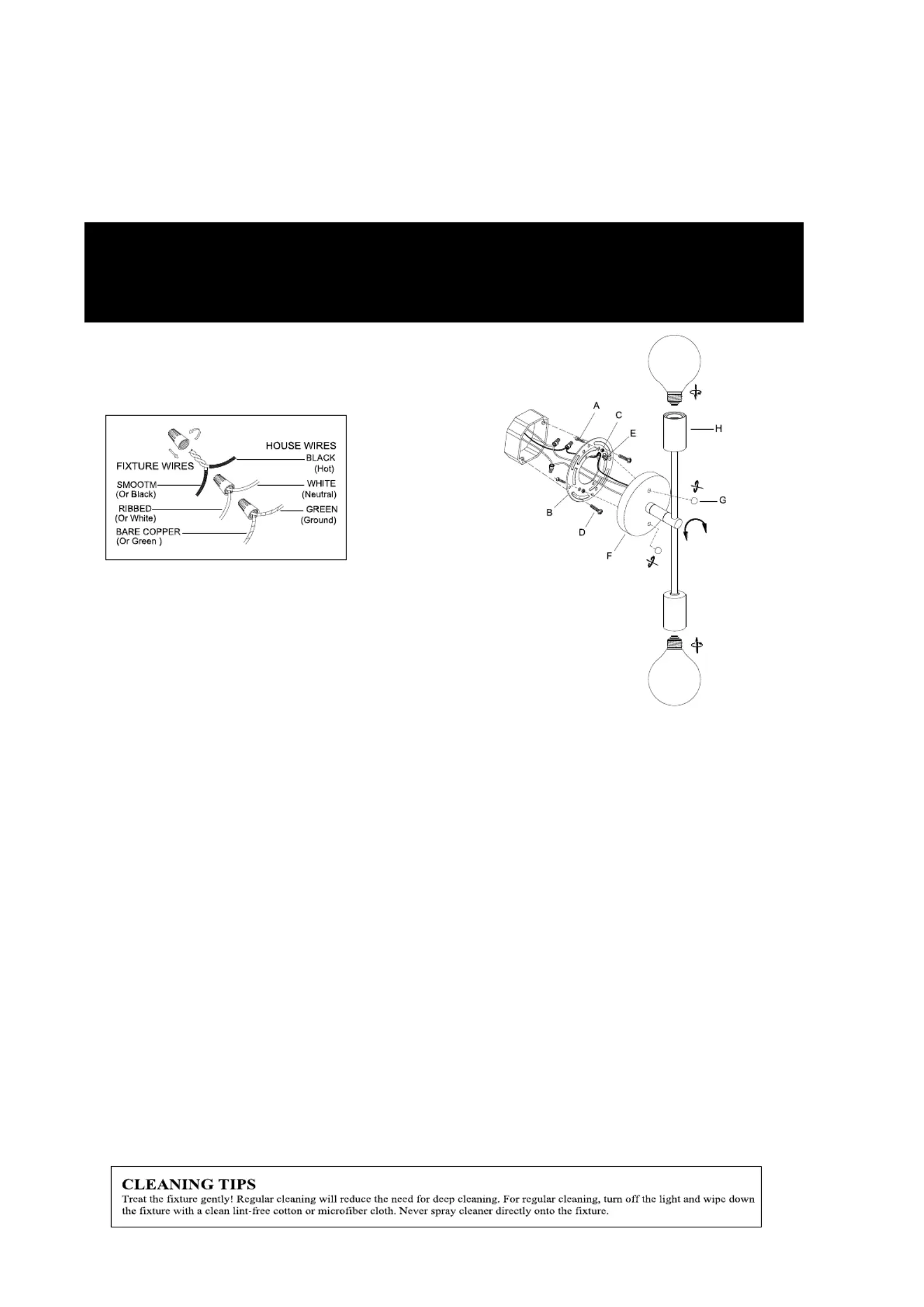Secure the backplate(F) in place with deco nuts(G). Install light bulb(s) (not included) in accordance with the fixtures specifications. Do ’