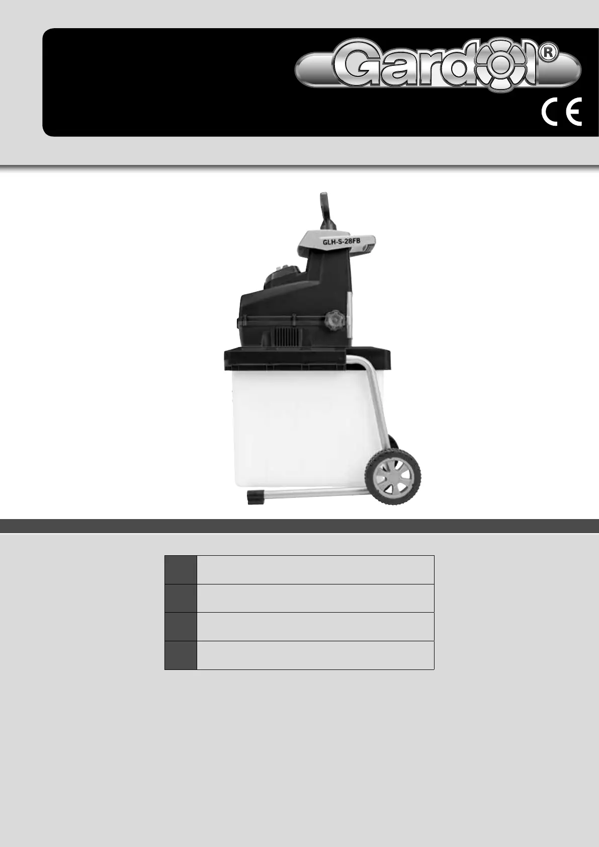 Lies die bedienungsanleitung für Gardol GLH-S-28FB (52 Seiten) kostenlos online; sie gehört zur Kategorie Häckselmaschine. Dieses Handbuch wurde von 4 Personen als hilfreich bewertet und erhielt im Schnitt 4.8 Sterne aus 2.5 Bewertungen. Hast du eine Frage zu Gardol GLH-S-28FB oder möchtest du andere Nutzer dieses Produkts befragen? Stelle eine Frage