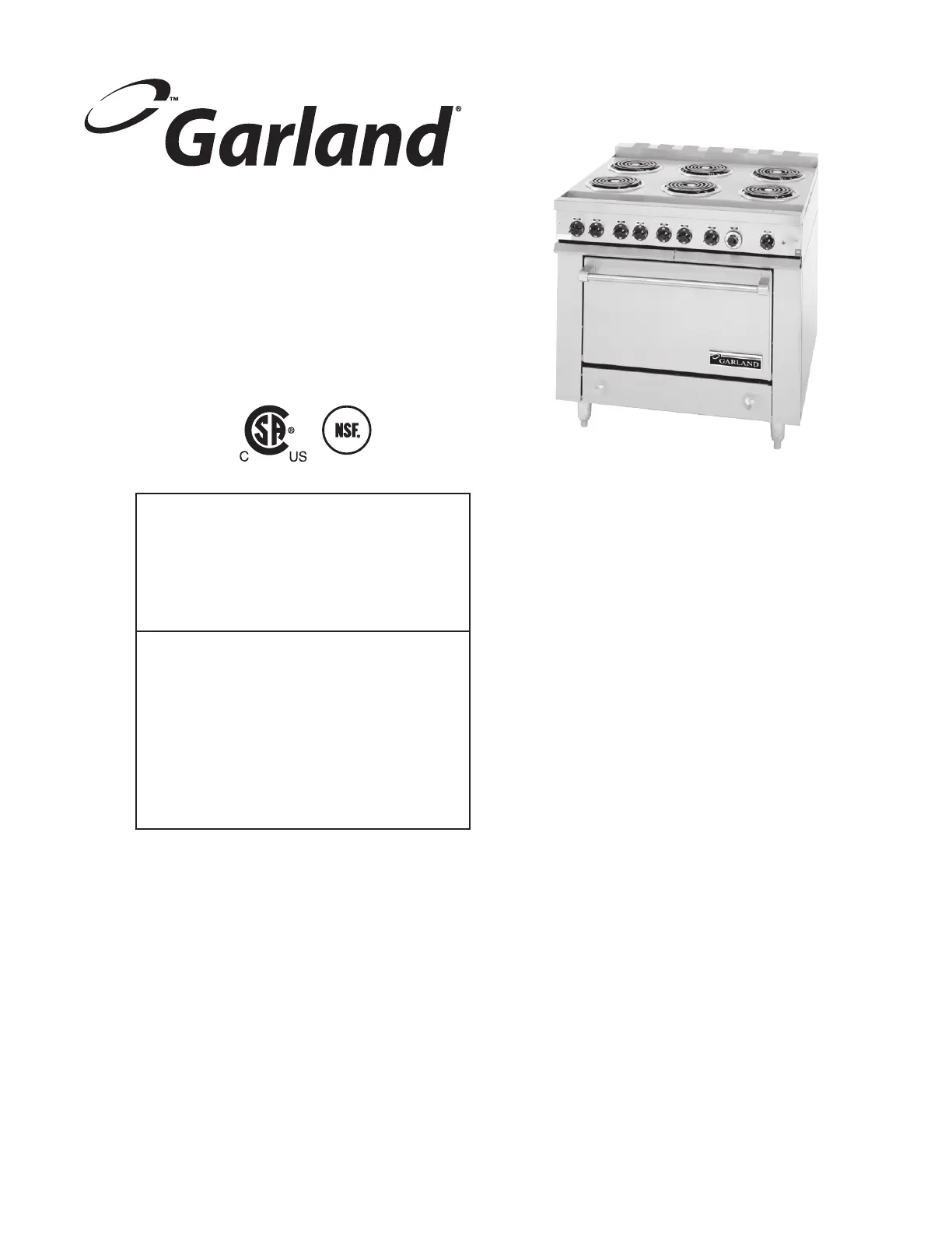 For a list of authorized service agents, please refer to the Garland web site at http://www.garland-group.com.