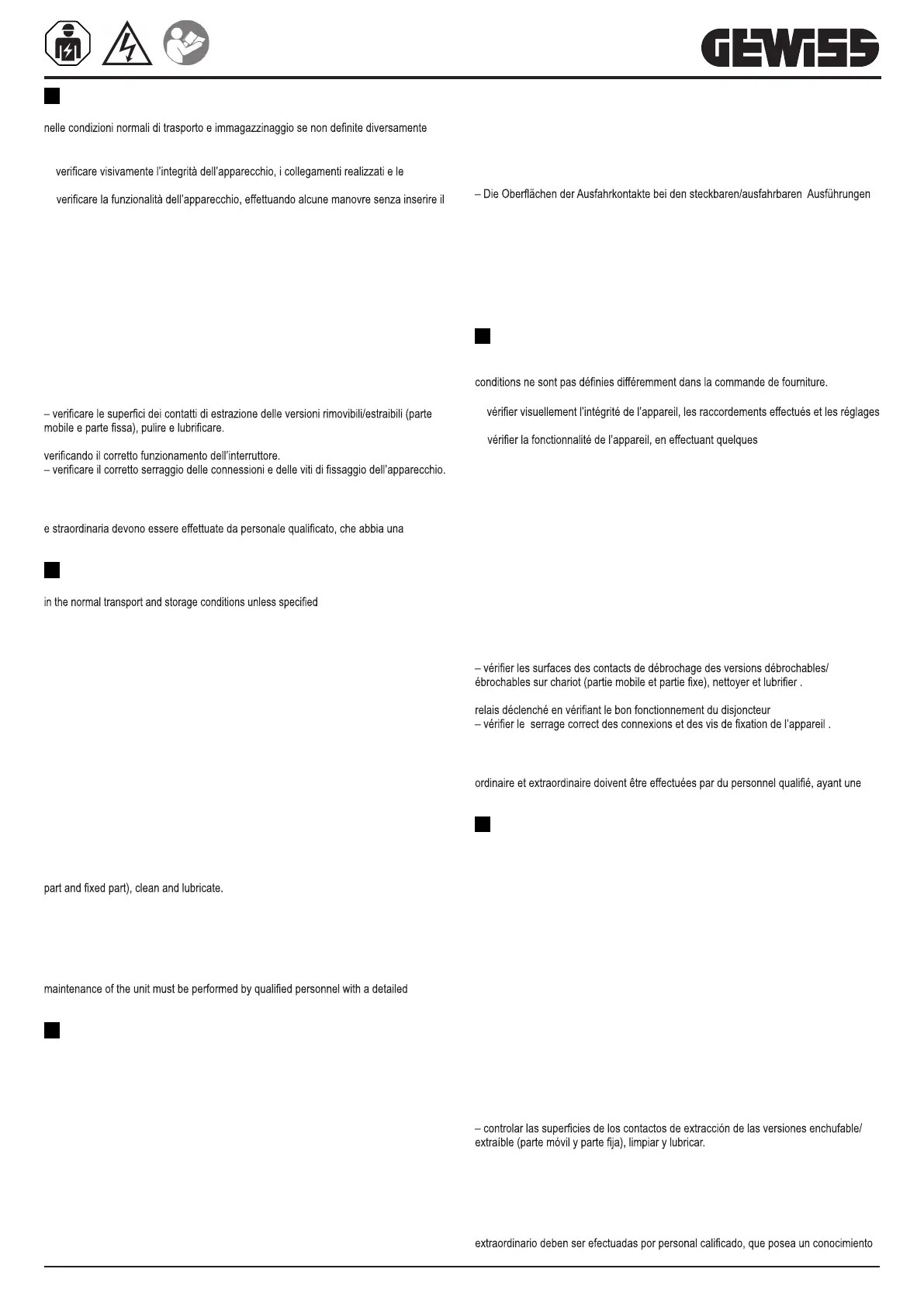 – check the surfaces of the racking-out contacts on plug-in/withdrawable versions (mobile