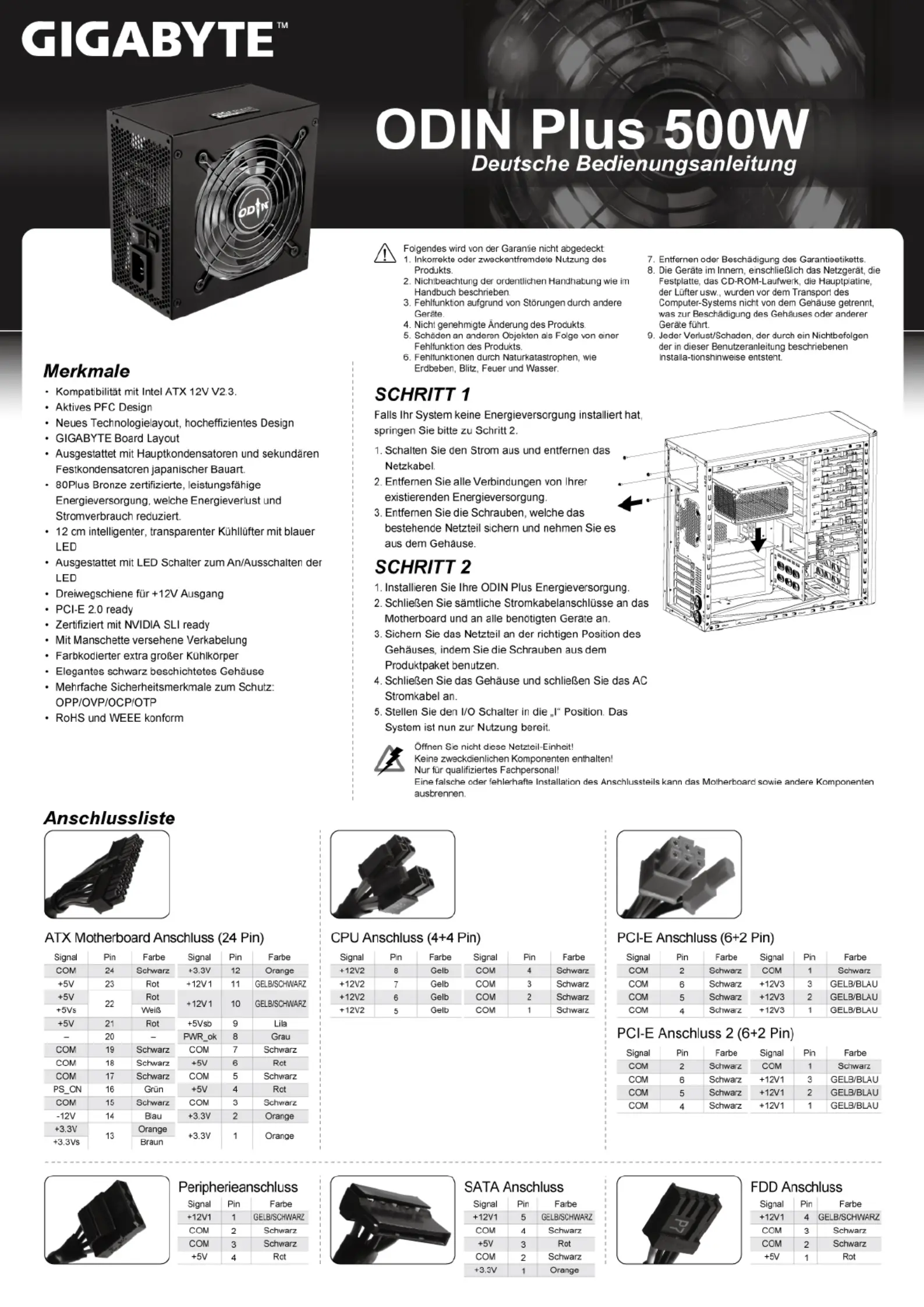 Gigabyte ODIN Plus 500W Bedienungsanleitung