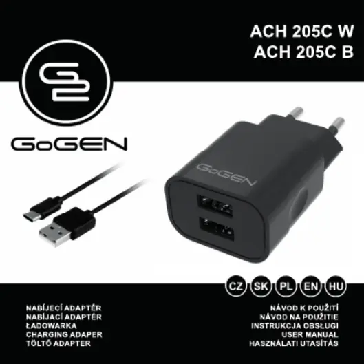 Lies die bedienungsanleitung für GoGEN ACH205CW (10 Seiten) kostenlos online; sie gehört zur Kategorie Ladegerät für Mobilgerät. Dieses Handbuch wurde von 37 Personen als hilfreich bewertet und erhielt im Schnitt 4.8 Sterne aus 19 Bewertungen. Hast du eine Frage zu GoGEN ACH205CW oder möchtest du andere Nutzer dieses Produkts befragen? Stelle eine Frage