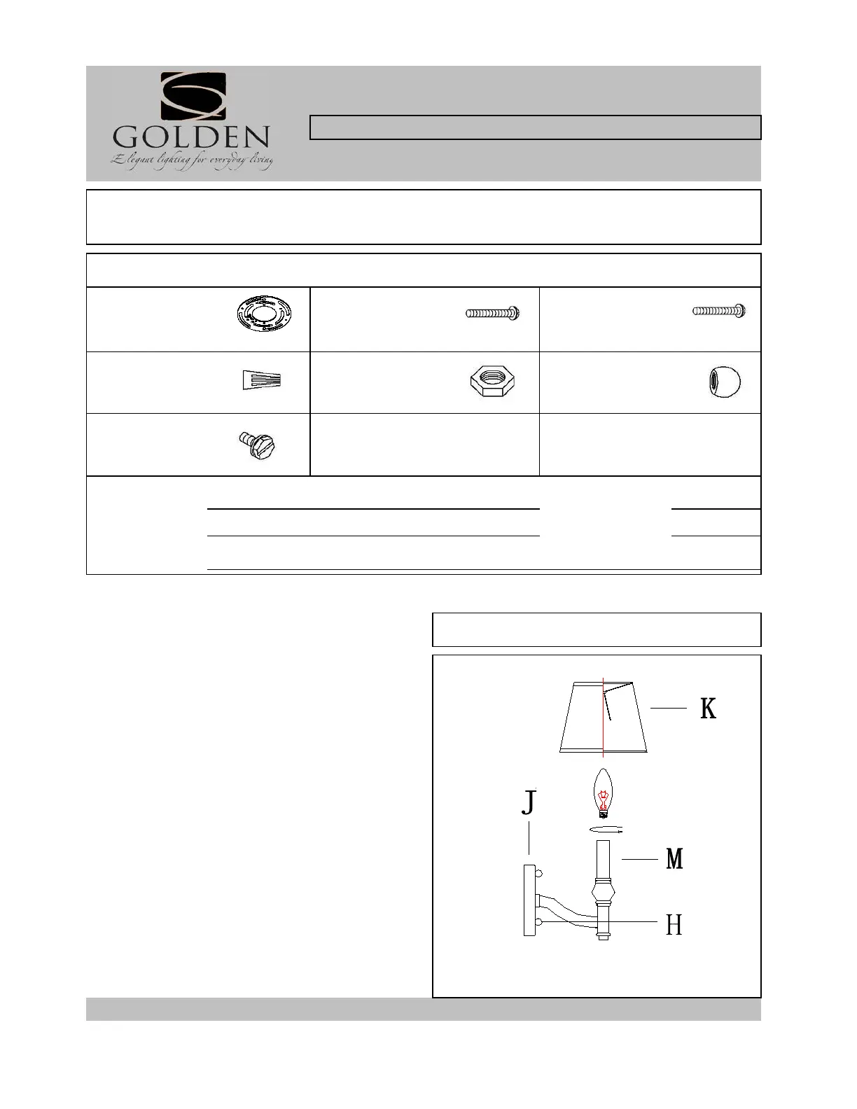 Notice: Please review the parts listing and check for all parts before assembling the fixture. If any parts are missing or