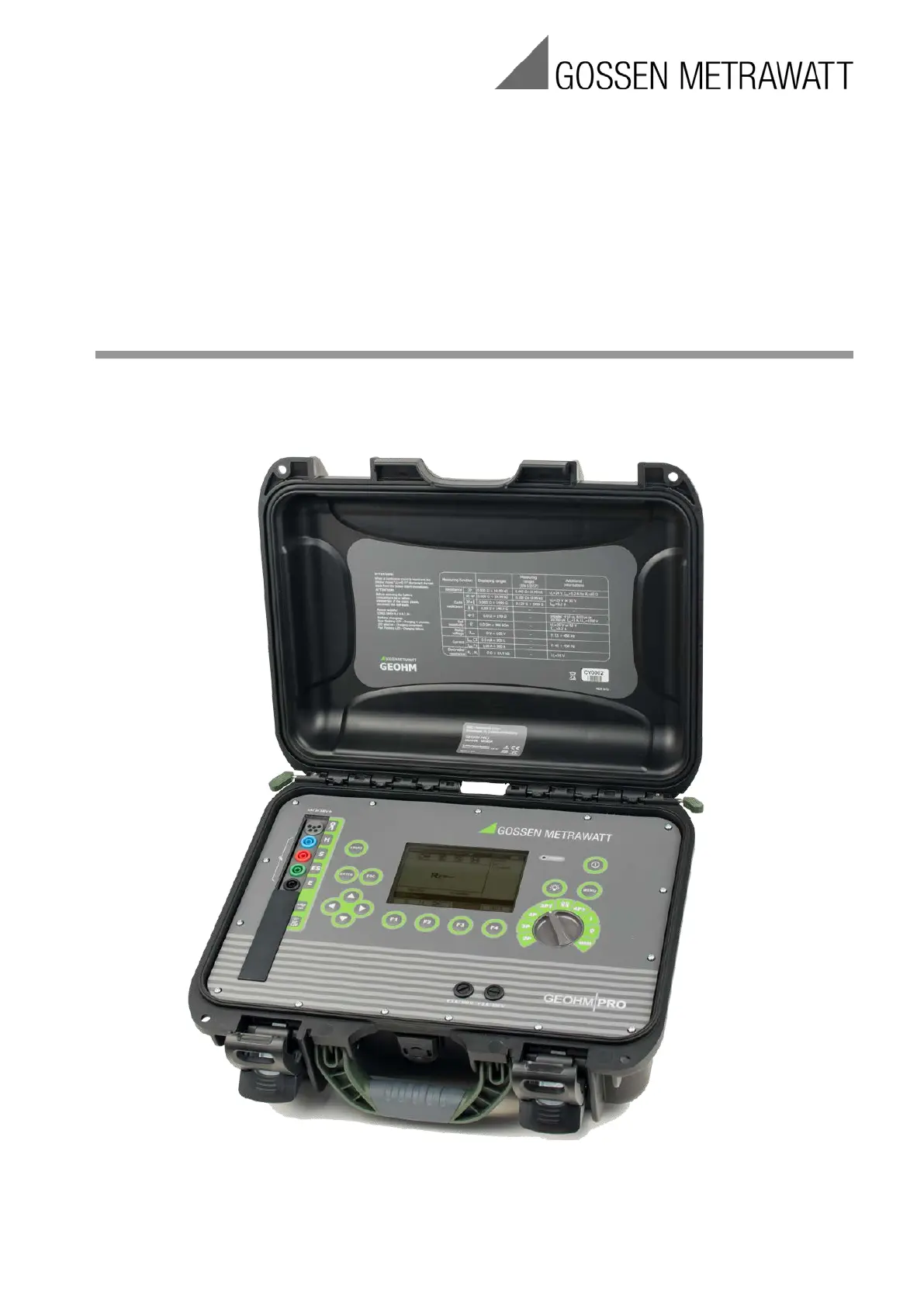 Lies die bedienungsanleitung für Gossen Metrawatt GEOHM PRO (48 Seiten) kostenlos online; sie gehört zur Kategorie Messgeräte. Dieses Handbuch wurde von 33 Personen als hilfreich bewertet und erhielt im Schnitt 3.8 Sterne aus 17 Bewertungen. Hast du eine Frage zu Gossen Metrawatt GEOHM PRO oder möchtest du andere Nutzer dieses Produkts befragen? Stelle eine Frage
