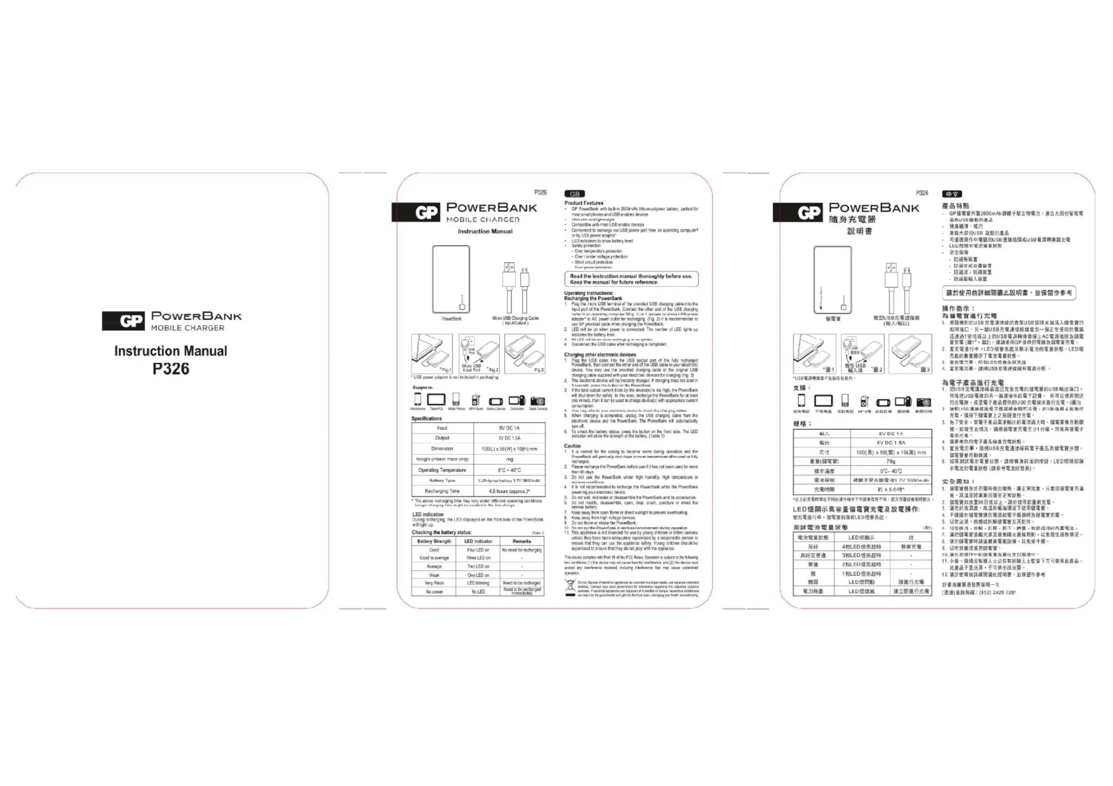 Lies die bedienungsanleitung für GP PowerBank Vivienne Tam P326 (1 Seiten) kostenlos online; sie gehört zur Kategorie Ladegerät für Mobilgerät. Dieses Handbuch wurde von 48 Personen als hilfreich bewertet und erhielt im Schnitt 4.4 Sterne aus 24.5 Bewertungen. Hast du eine Frage zu GP PowerBank Vivienne Tam P326 oder möchtest du andere Nutzer dieses Produkts befragen? Stelle eine Frage