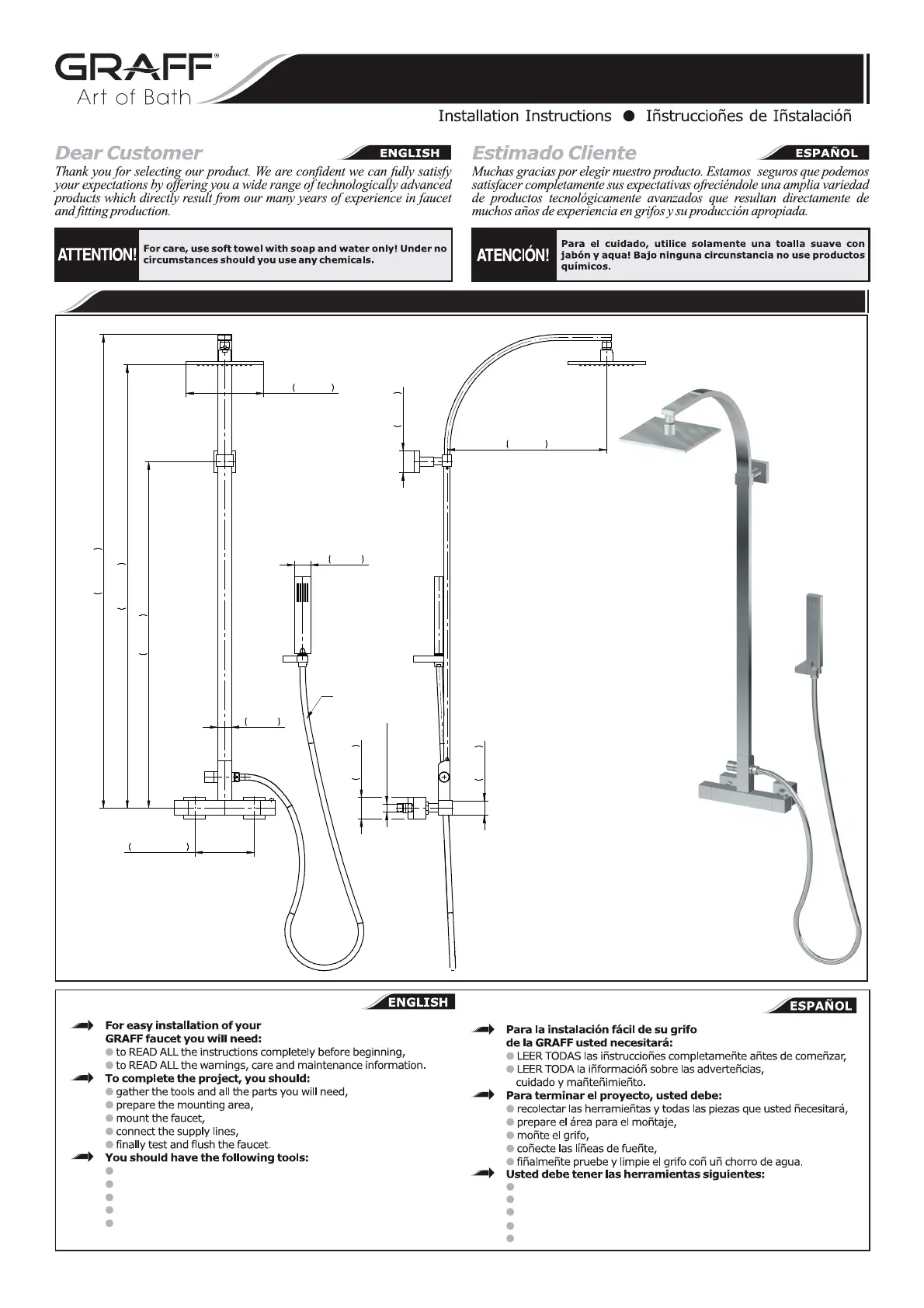 Lies die bedienungsanleitung für Graff GX-8950 (9 Seiten) kostenlos online; sie gehört zur Kategorie Duschsystem. Dieses Handbuch wurde von 2 Personen als hilfreich bewertet und erhielt im Schnitt 4.4 Sterne aus 9 Bewertungen. Hast du eine Frage zu Graff GX-8950 oder möchtest du andere Nutzer dieses Produkts befragen? Stelle eine Frage