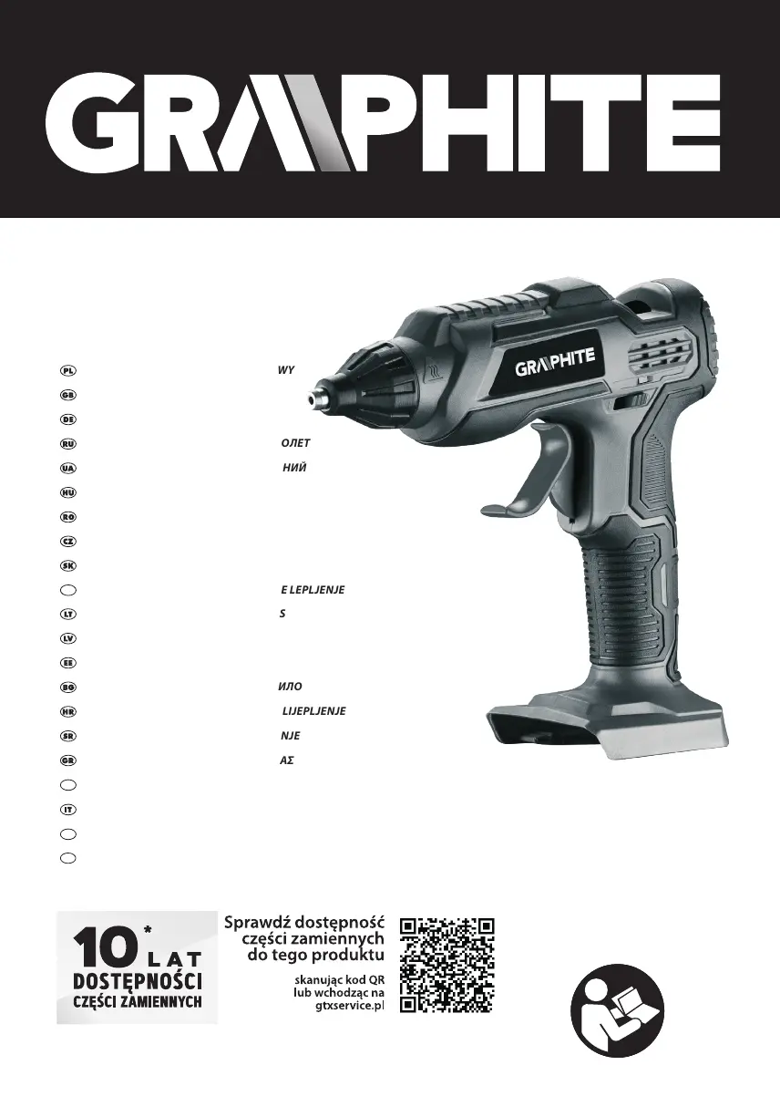 Lies die bedienungsanleitung für Graphite Energy+ 58G040 (48 Seiten) kostenlos online; sie gehört zur Kategorie Klebepistole. Dieses Handbuch wurde von 54 Personen als hilfreich bewertet und erhielt im Schnitt 4.5 Sterne aus 27.5 Bewertungen. Hast du eine Frage zu Graphite Energy+ 58G040 oder möchtest du andere Nutzer dieses Produkts befragen? Stelle eine Frage