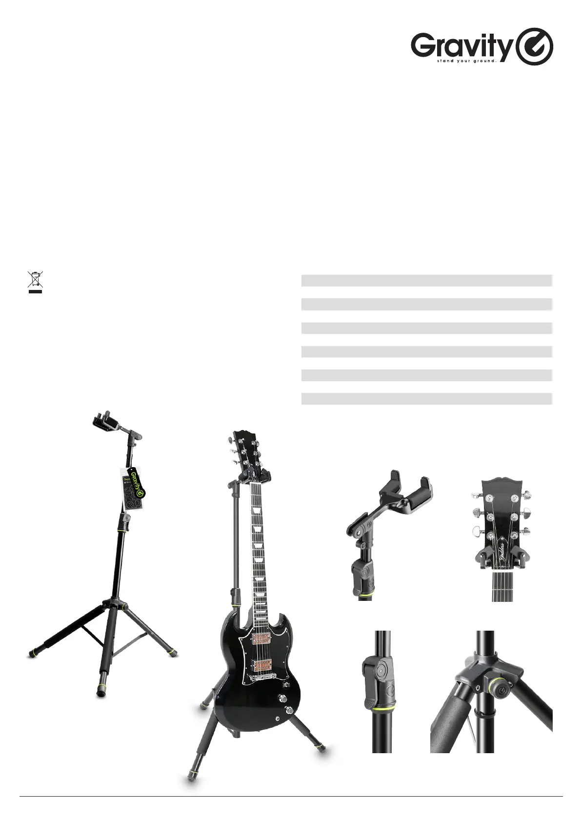and bass guitars. It is easily height adjustable up to 108 cm and features Gravity‘s