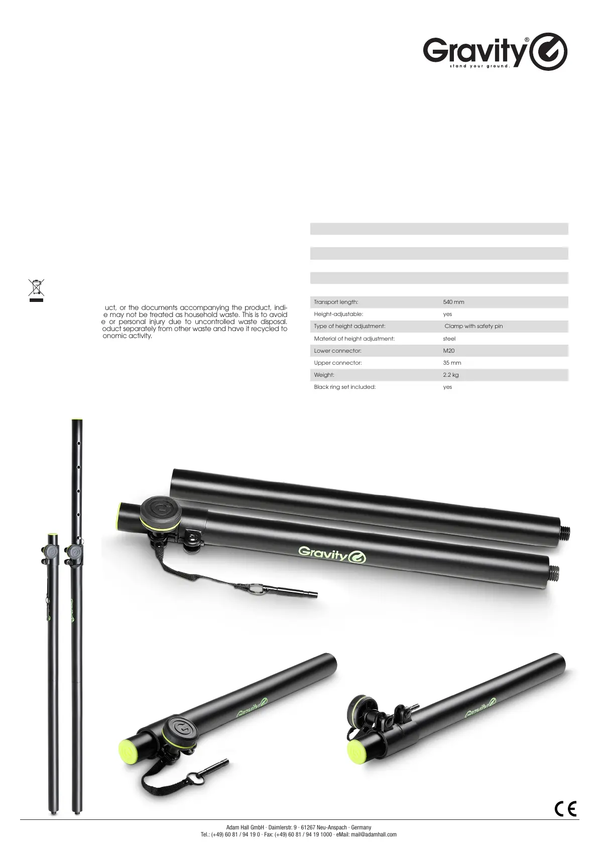 Type of height adjustment: Clamp with safety pin