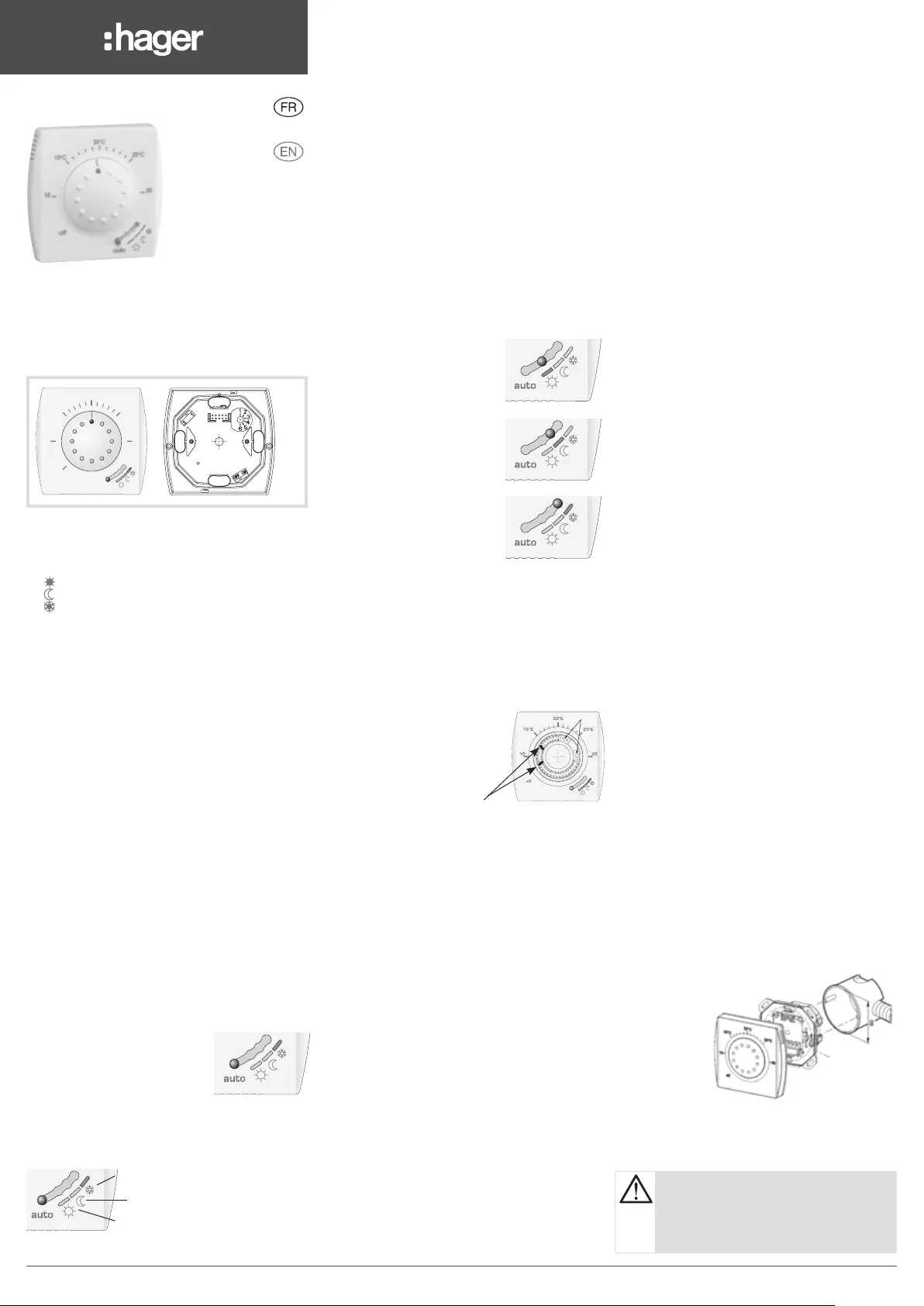 Lies die bedienungsanleitung für Hager 25113 (6 Seiten) kostenlos online; sie gehört zur Kategorie Thermostat. Dieses Handbuch wurde von 17 Personen als hilfreich bewertet und erhielt im Schnitt 4.4 Sterne aus 5 Bewertungen. Hast du eine Frage zu Hager 25113 oder möchtest du andere Nutzer dieses Produkts befragen? Stelle eine Frage