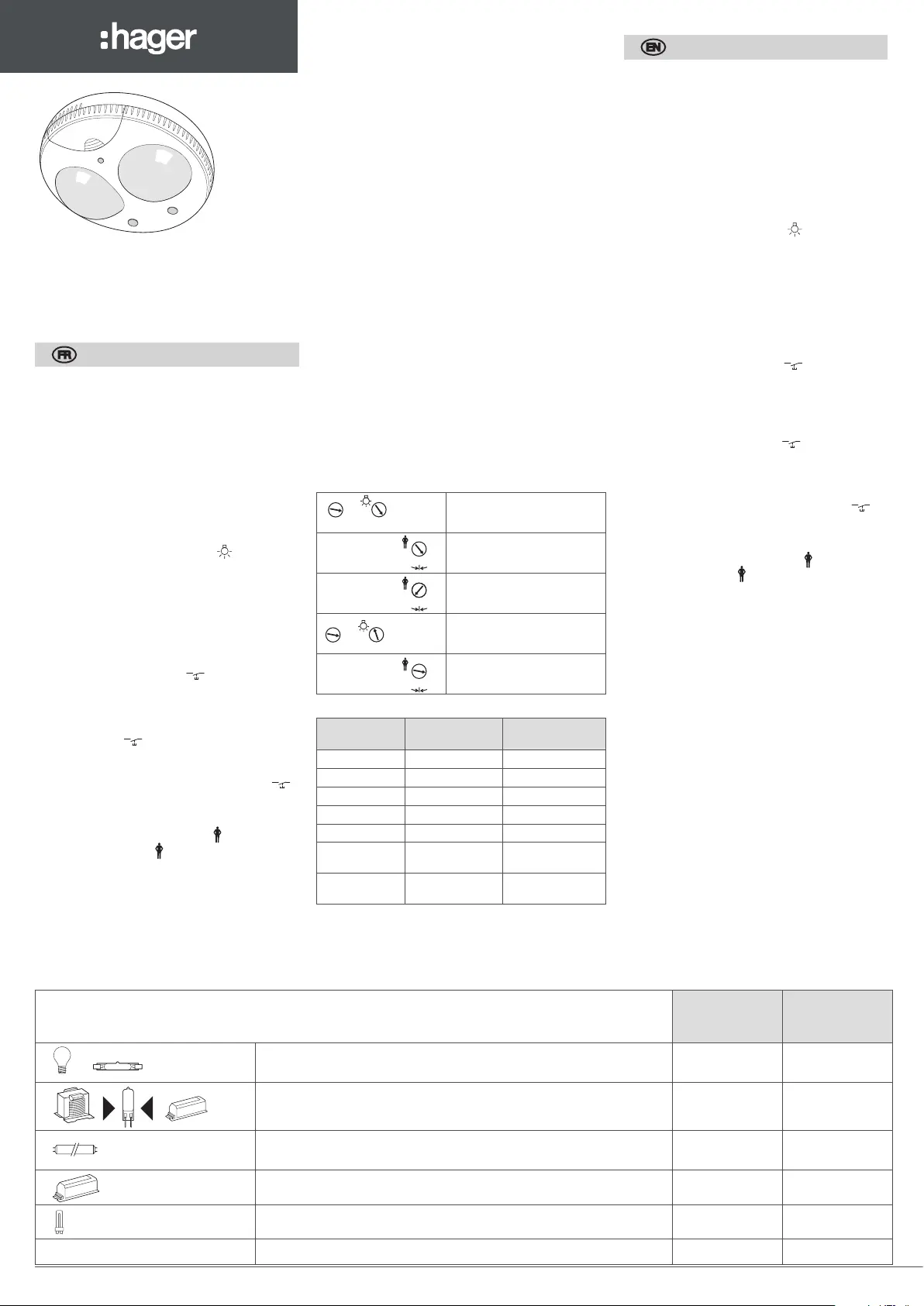 Lies die bedienungsanleitung für Hager 52367 (4 Seiten) kostenlos online; sie gehört zur Kategorie Bewegungsmelder. Dieses Handbuch wurde von 16 Personen als hilfreich bewertet und erhielt im Schnitt 4.8 Sterne aus 8.5 Bewertungen. Hast du eine Frage zu Hager 52367 oder möchtest du andere Nutzer dieses Produkts befragen? Stelle eine Frage