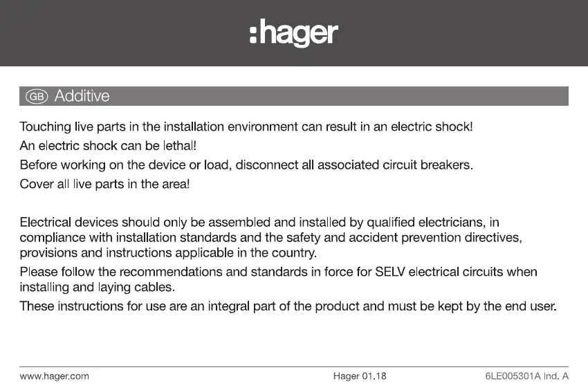 Bedienungsanleitung Nicht kategorisiert Hager