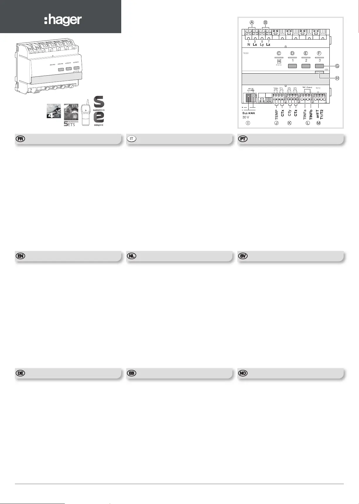 Lies die bedienungsanleitung für Hager TE331 (6 Seiten) kostenlos online; sie gehört zur Kategorie Nicht kategorisiert. Dieses Handbuch wurde von 3 Personen als hilfreich bewertet und erhielt im Schnitt 5.0 Sterne aus 2 Bewertungen. Hast du eine Frage zu Hager TE331 oder möchtest du andere Nutzer dieses Produkts befragen? Stelle eine Frage